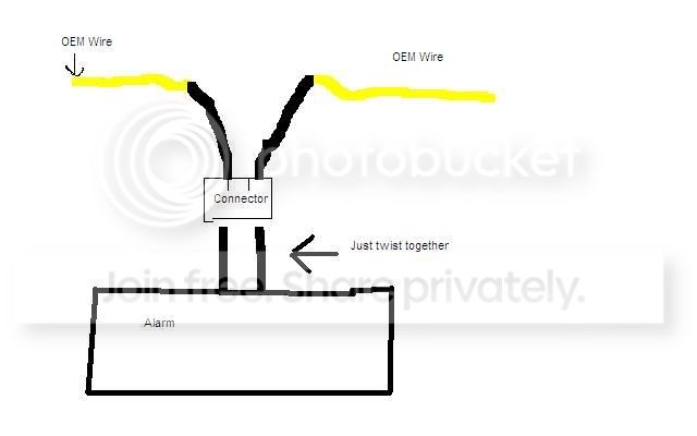 Those 2 black wires coming out of the alarm should be hooked to the ignition after the white connector. Usually you just cut the oem ignition wire in half and run one of those black wires to each side (to install the kill switch), so if you connect those 2 black wires it should be ok and start fine with the alarm taken out.