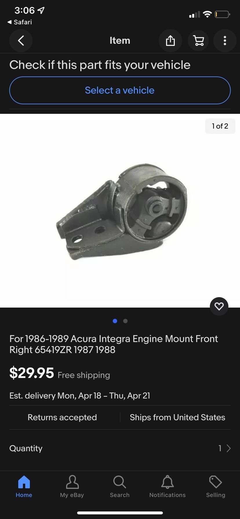 i have an issue finding the mount for my 1989 acura integra. the mount that shows up is completely different. it’s the driver side engine mount i need. this is the engine mount that comes up this is the engine mount i need help with this is one of the only pics i’ve found of it