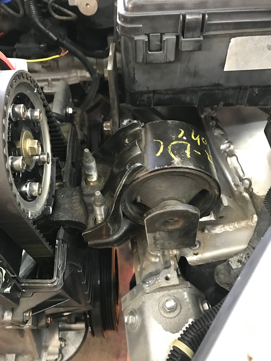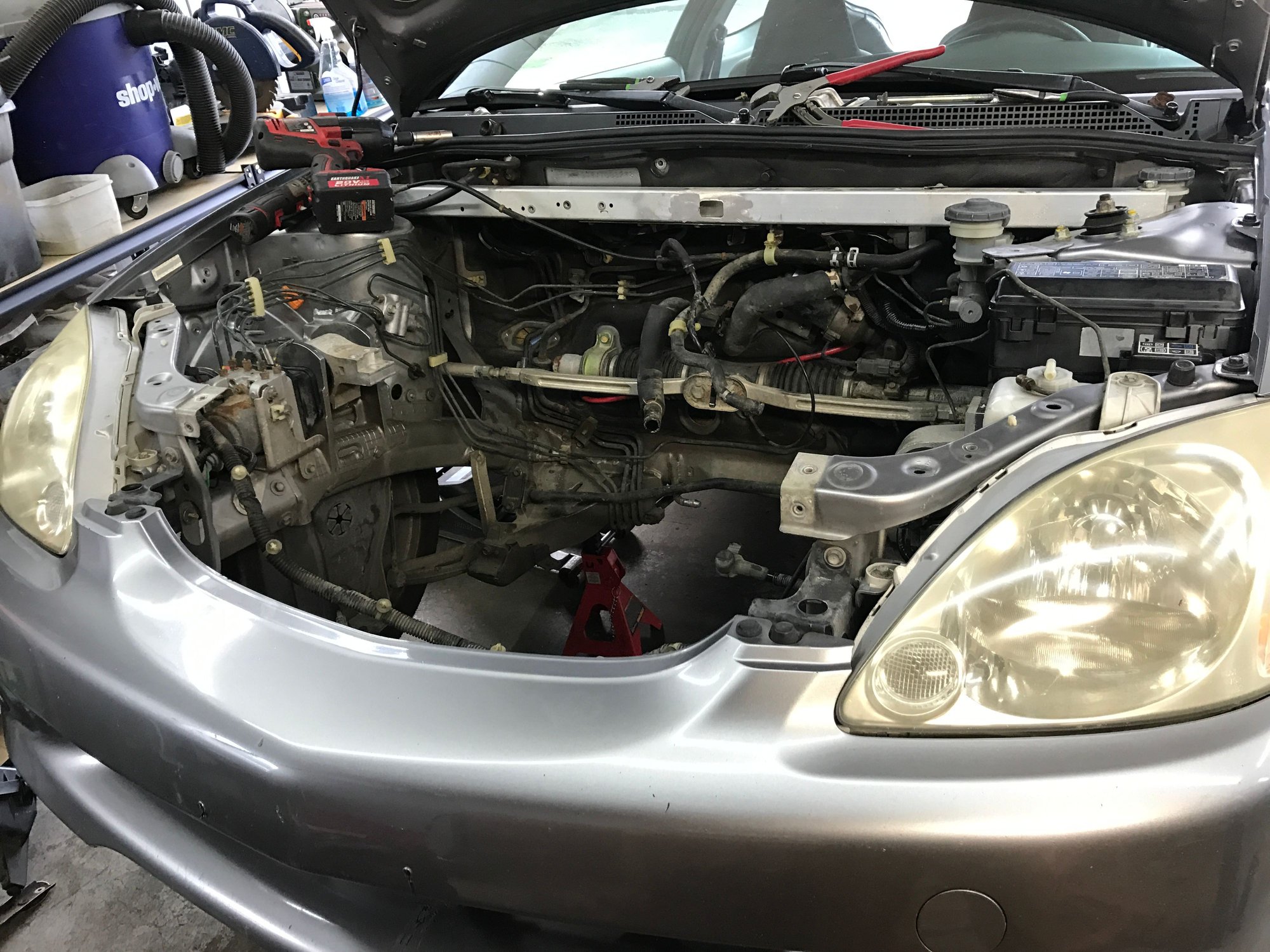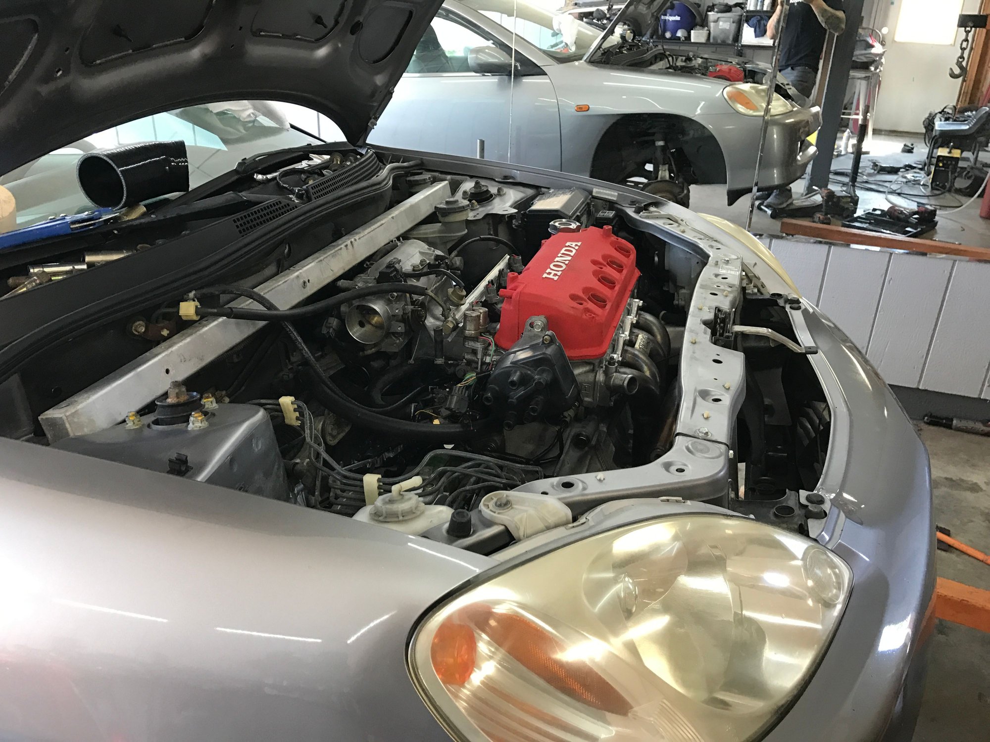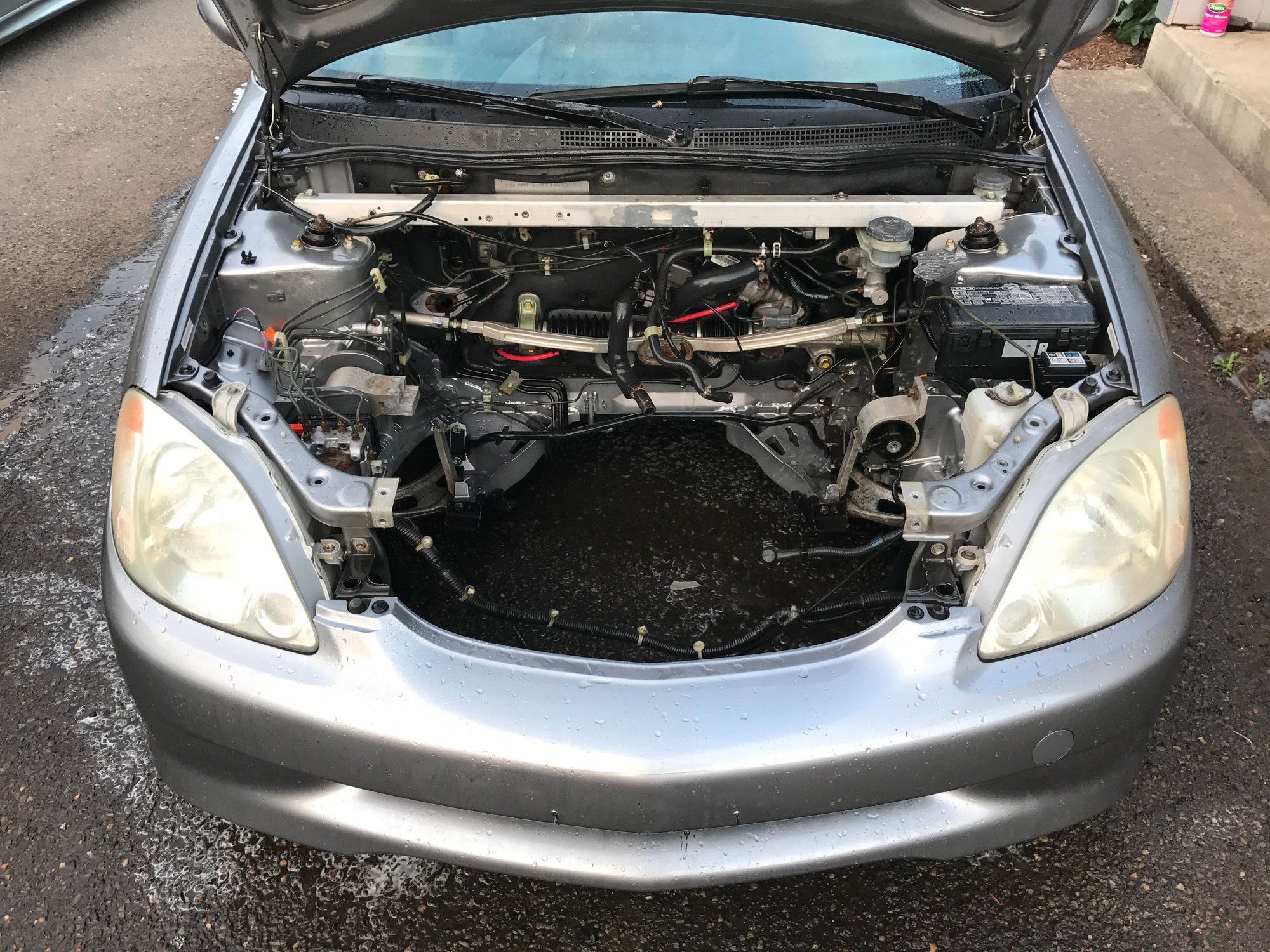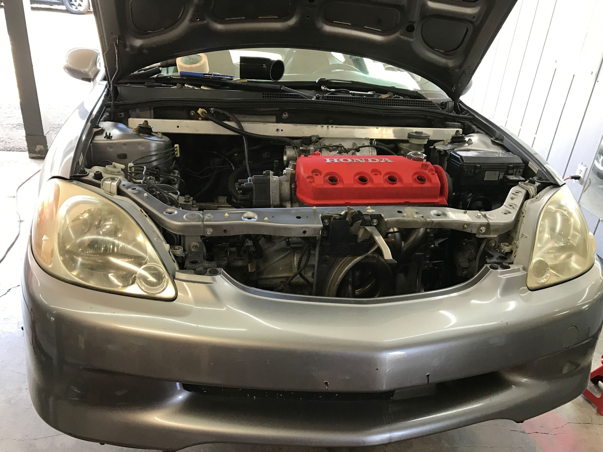 I was just thinking about a j series insight and how horrible it would be to have to work on lol. The single cam fits fairly snug in here, especially with the core support back in place for the hood latch.