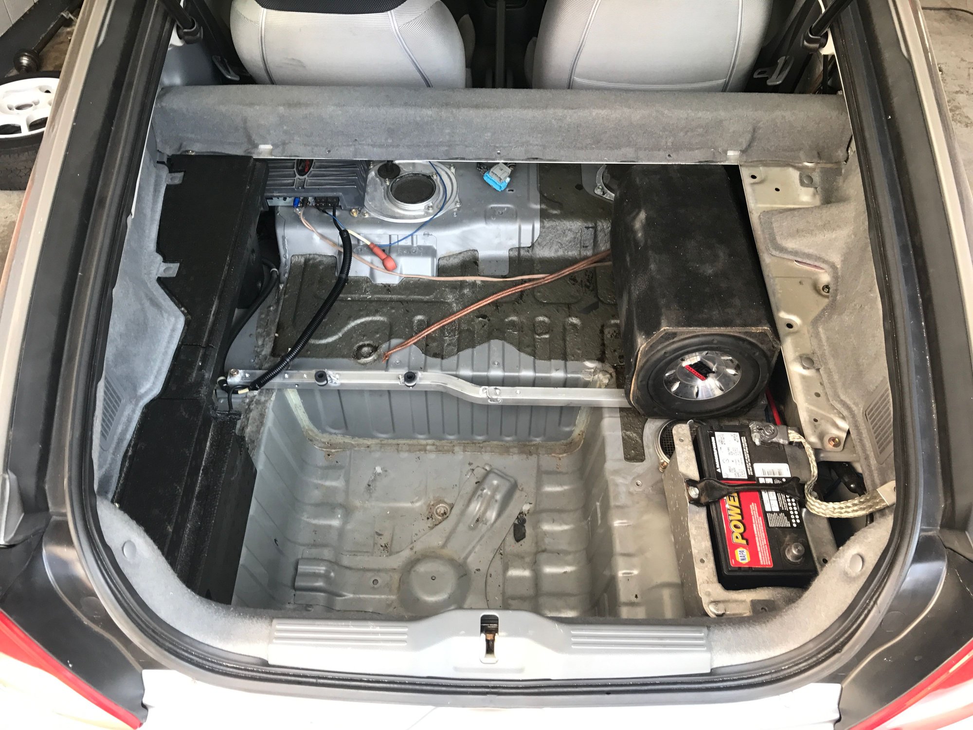 Trunk is cleared out of the D.C. To D.C. Converter and ima stuff that isn't needed. I'm gonna reorganize it for better space and move the battery closer to the seats behind me. Also finished the t bracket so all mounts are done and it feels very solid. Wiring is 99% done besides coolant temp, check engine light works and is checkable just like a obd1 car. Fuel pump primes from the ecu and everything works as it should. I had to order a mk1 vw radiator because neither an isight radiator relocated to passenger side nor a eg radiator fit at all. Exhaust is next and I need to install the drivers side axle and finish up welding the shift linkage and put fluids in it.