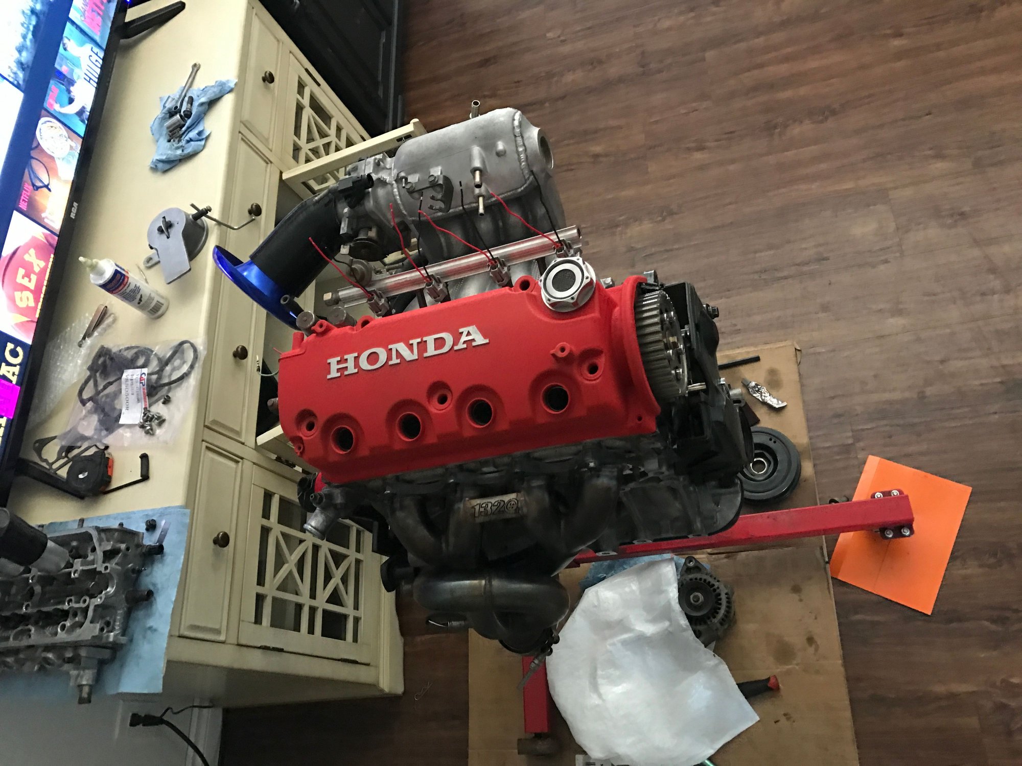 The clear cover was on eBay they are like 15-16 bucks shipped and look really nice. I did have to use a flap wheel to fit it because it was a bit too thick in the top part that slides into the valve cover. Also I am gonna use the cbr 1000rr injectors in the y8 manifold. They are 12 hole denso injectors and should be right about 295-310cc depending on where you read.