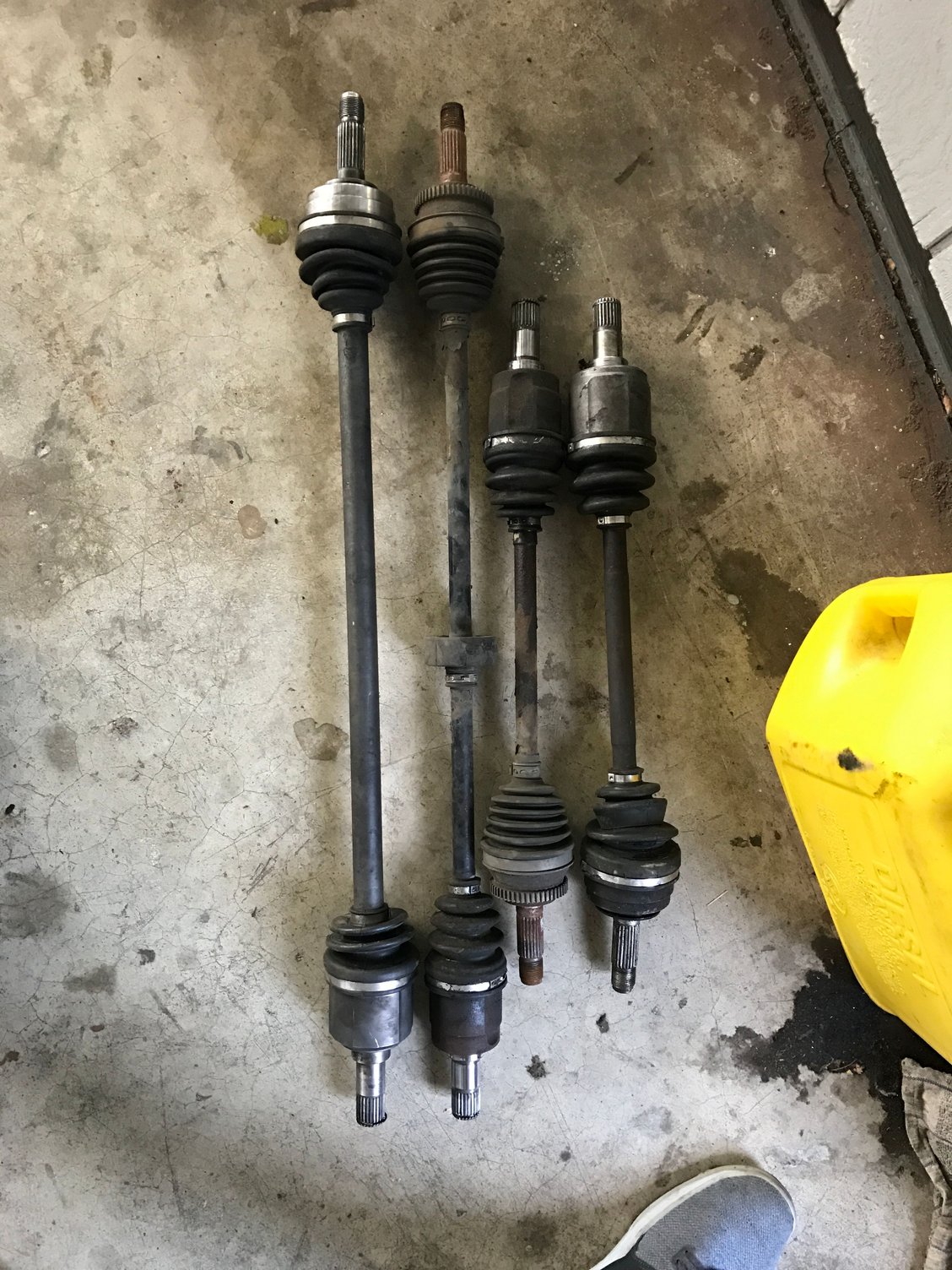 So after allot of apprehension about pulling out a perfectly good running 55whp engine I finally pulled the trigger and yanked out the inline 3 out of the insight today. To tell the truth the hardest part was figuring out how to disconnect the ima cables. The insight axles are almost identical to crx hf axles like I had hoped, the hf's are a bit beefier lol and the long axle has a bit longer splined end that goes in the tranny side. I also removed the D.C.-D.C. Converter from the trunk and plan on building somewhat of a tool storage area for my tuning tool box because I use this car allot when I travel to go tune cars. The inline 3 is almost the same height as the 1.7 stroker motor and it had allot of headroom left in the bay before it was pulled.
