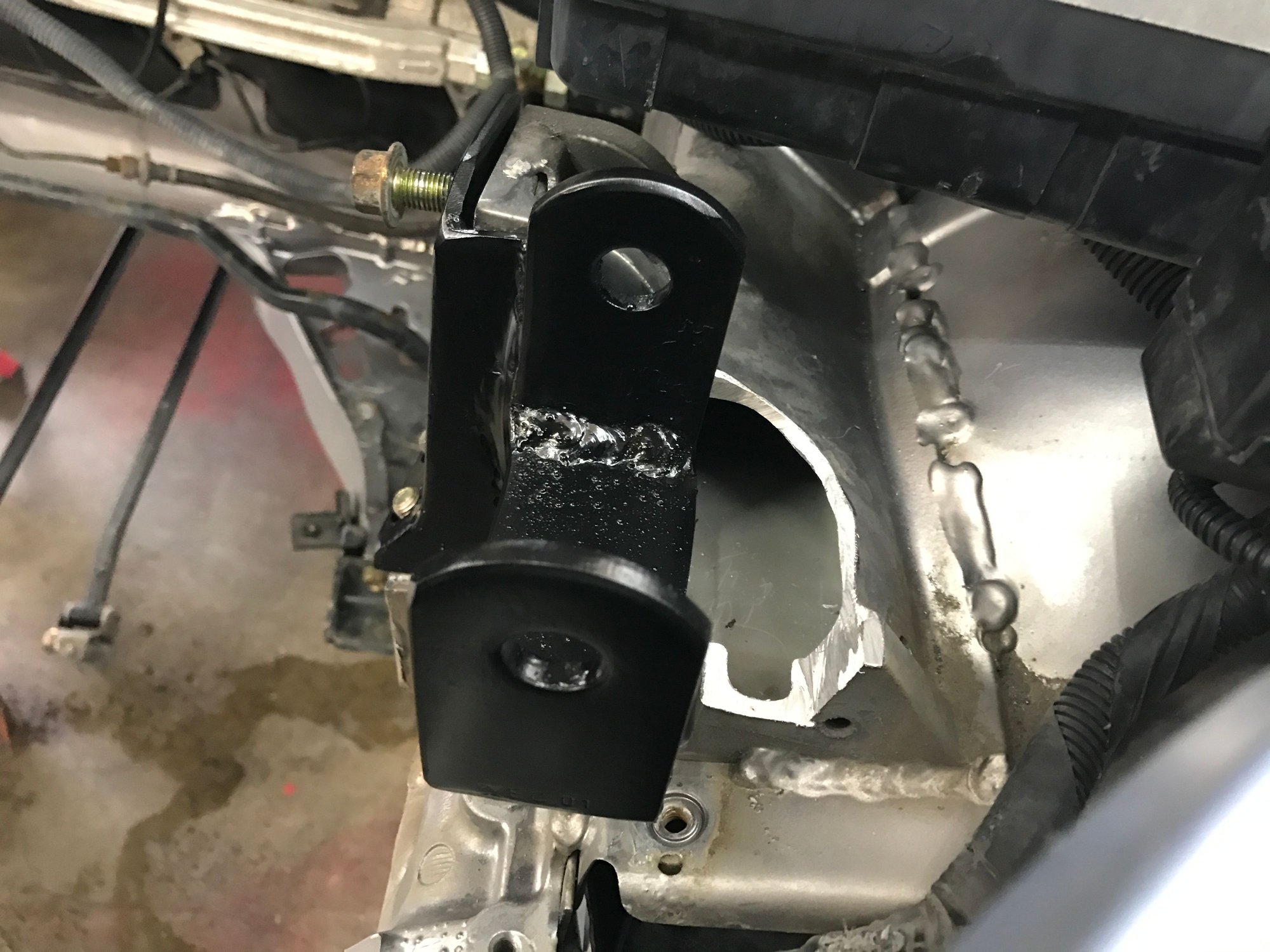 My phone doesn't have enough memory left to take a video long enough to cover a first and second gear pull with the stock 3 cylinder lol. Not even lying. I got the tranny mount done today besides clean up and paint. Driver side mount shouldn't be too hard either and once those are done I'll mod the d series t bracket to bolt up to the stock insight rear mount. Shift linkage is super close to bolting it up but I'll have to add a bend to the stabilizer bar for clearance. Once the mounts are finished the rest should go pretty smooth. Not much different then doing a swap in a civic really. The hf axles fit beautifully, I put them in before welding up the trans mount to insure the swap was centered and cv angles were acceptable. Ground clearance is killer, just as good as the 3 cylinder.