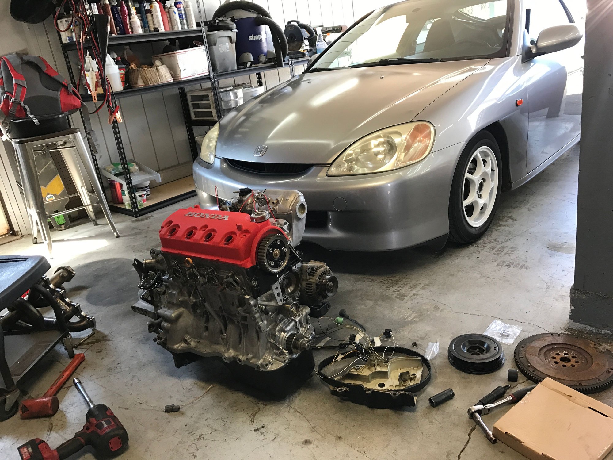 Decided to swap the insight this summer. Bought a new bike that I've been riding since it's been sunny here so I don't need it for a daily for the time being. Working on the engine harness right now, also still need to get a water pump and time the engine as well as fit the b series crank pulley on the engine and add new timing marks to match the z6 lower timing cover.