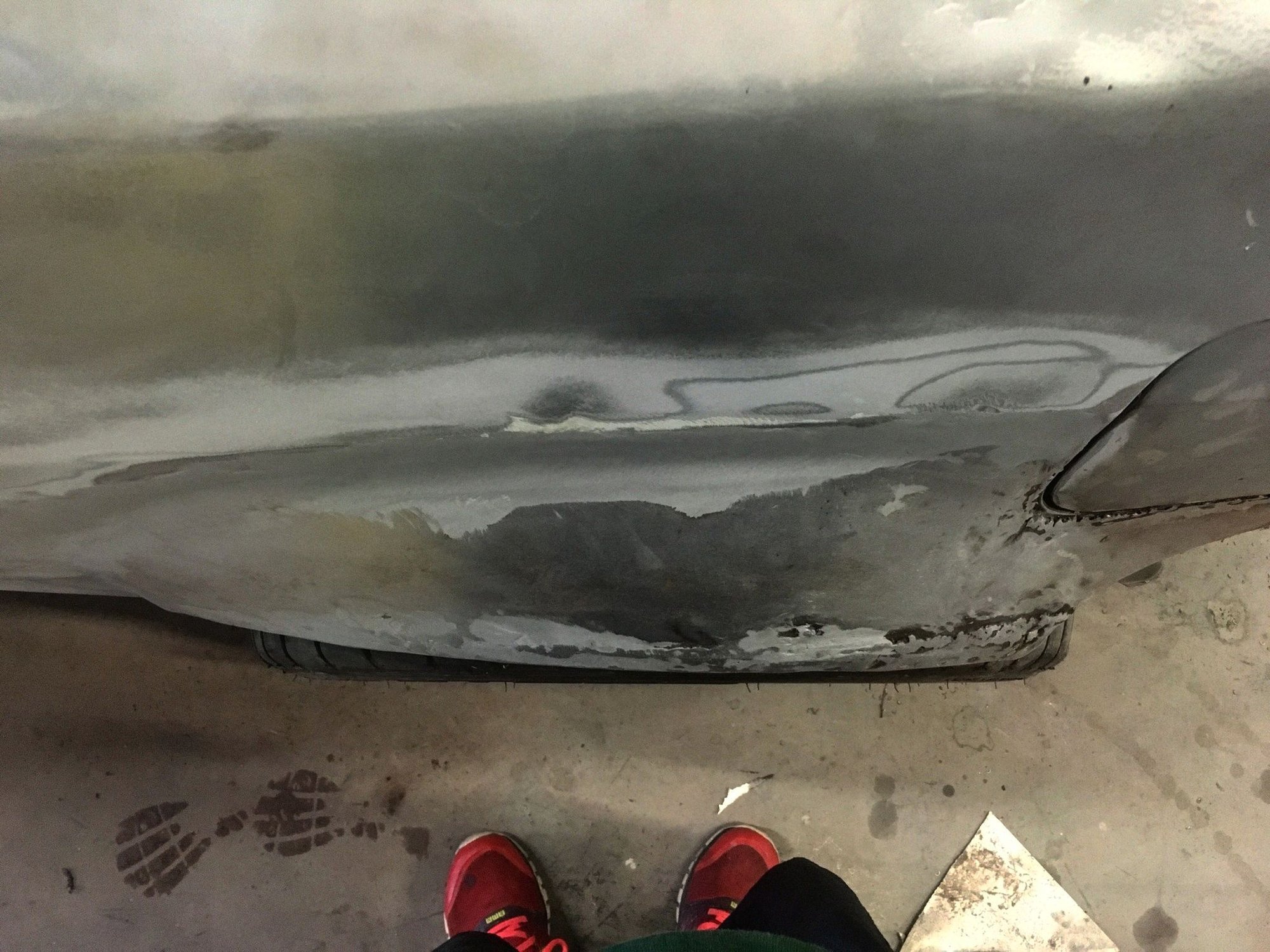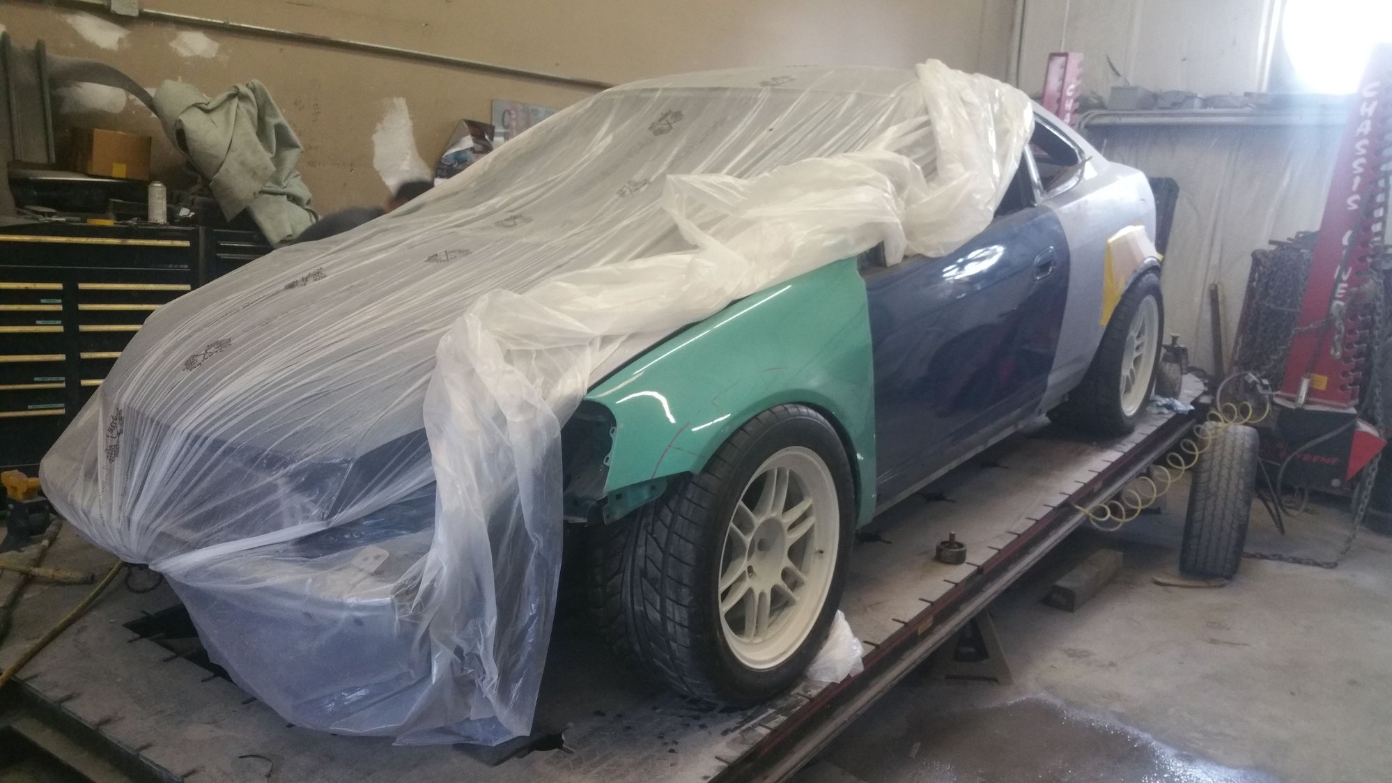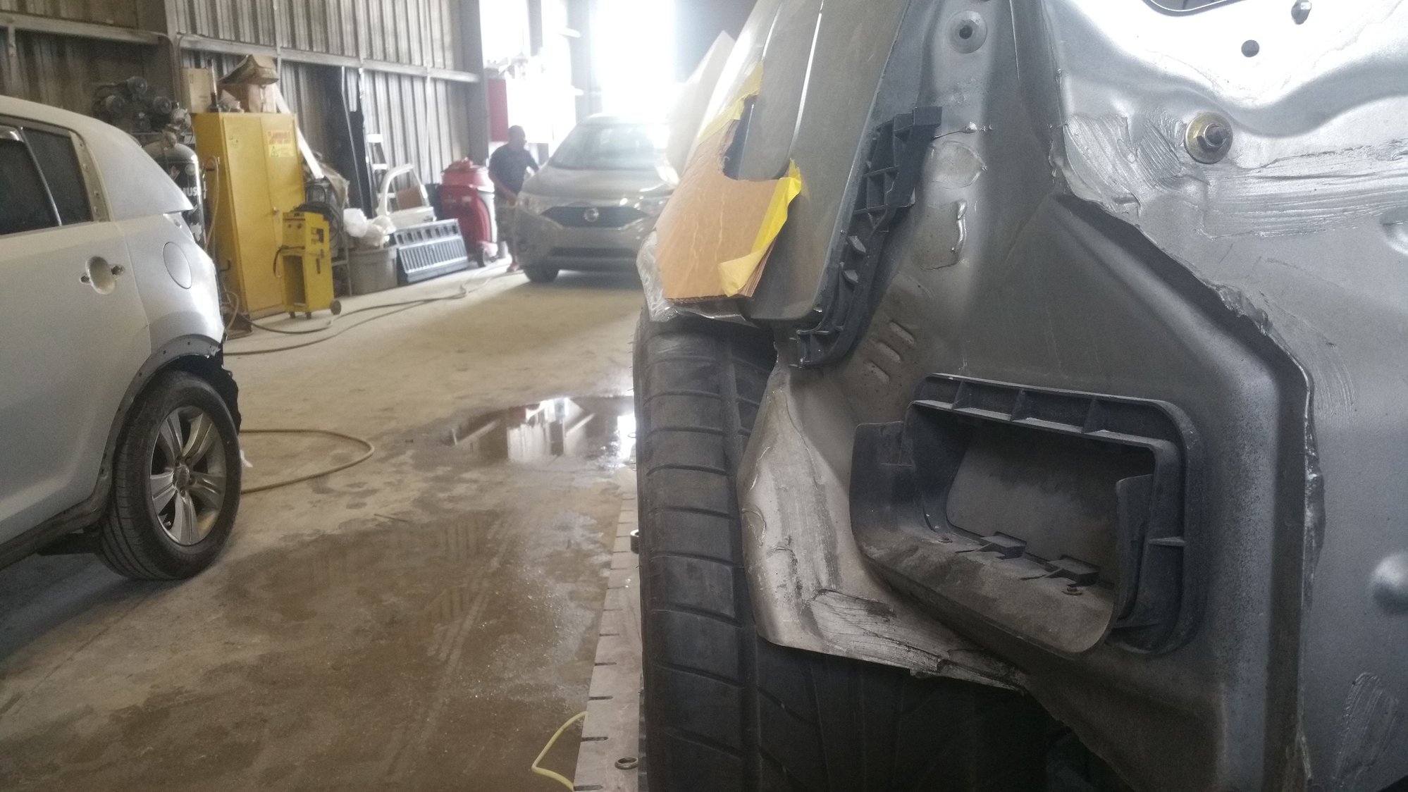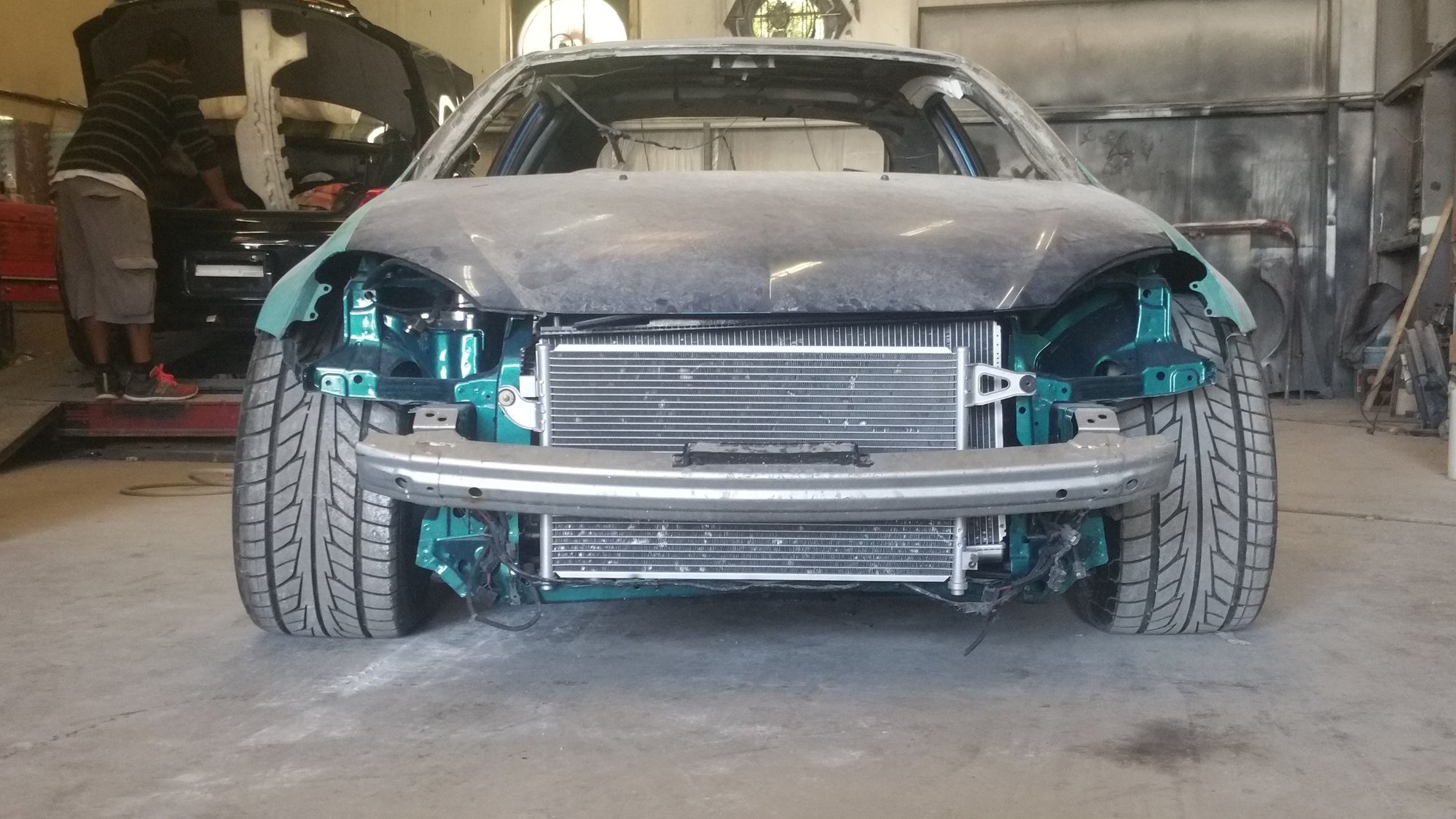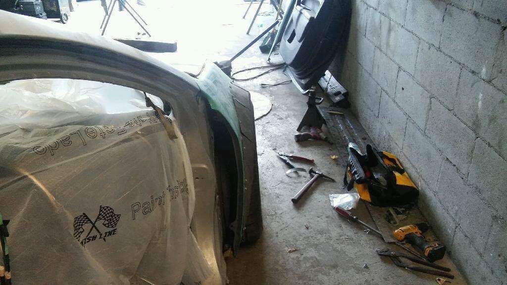 Drop Off Day at the Cordero Built Shop. Just look at that quarterpanel 😂 They litteraly had to remove all the bondo put on there by the previous shop, and re-make the wide panel, while making sure the bumper meets where it should. Better example here.. Much much better.