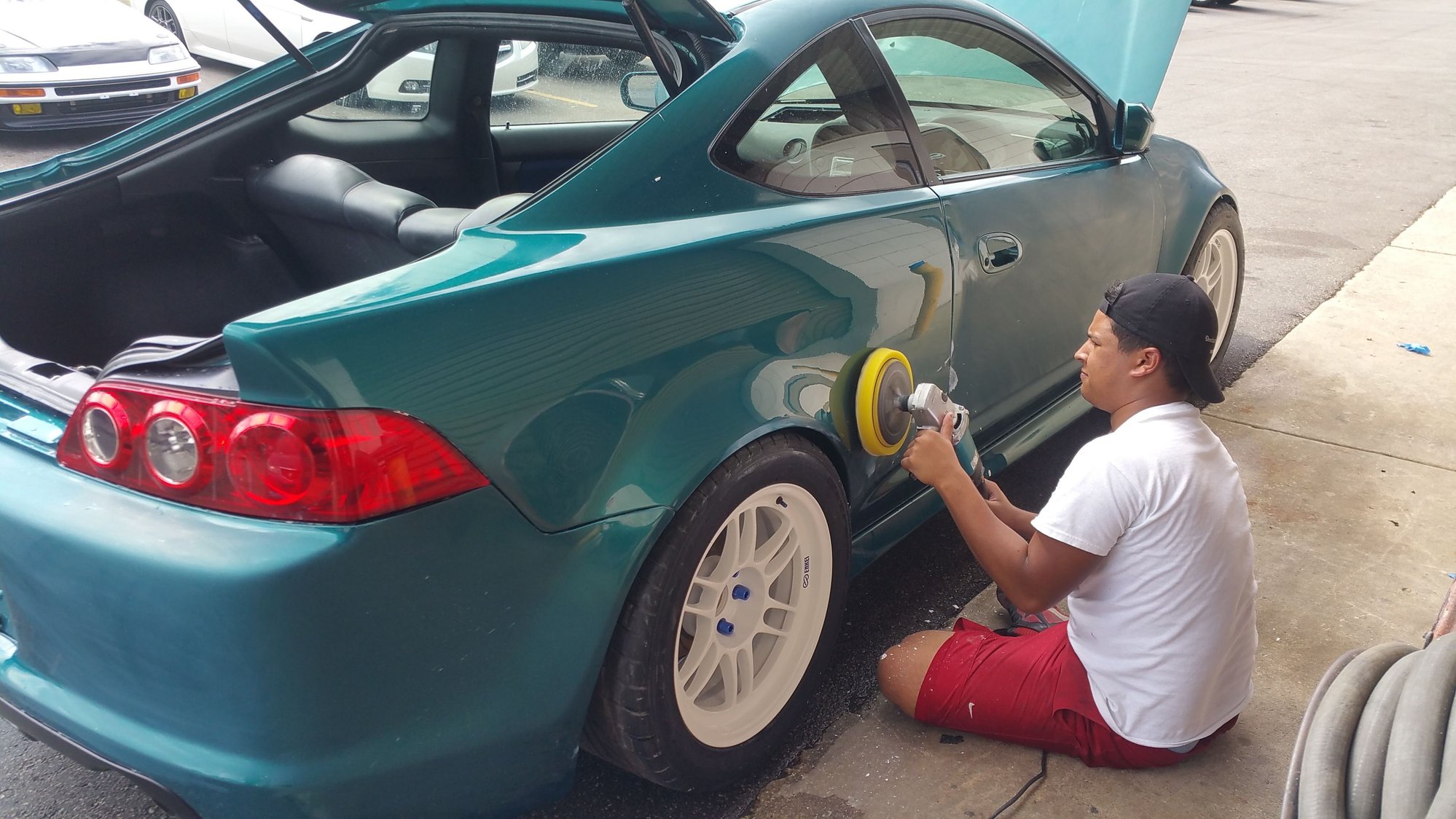 This was probably the worst part to have to deal with. But after hours and hours of swapping the wiring everything was working the way it was meant to be. While we were busting our heads outting the car back together A&G Coatings came in clutch with the wheel job. Flawless work. Guaranteed. Wasted 0 time and got those tires mounted, all that was left was basic stuff like Coolant, oil change, tranny fluid etc. Start up day was close. Making sure everything was right, tight, and alright. Before test driving. Drove her straight to Action Tires in Kissimmee for an alignment and wheel balance. Drove perfect, like it was never taken apart. Then Kelvin Cordero came by the shop and got her wetsanded and buffed, ready for HondaFest Orlando which was a few weeks away. We made it to hondafest, and took home Top 30 Best of Show. Not bad for a comeback. Afterwards attended HIN Tampa, and took home 1st Place Best Acura. Few weeks later, got my brembos back from being brought back to life and to this date I still havent put em on.. lol