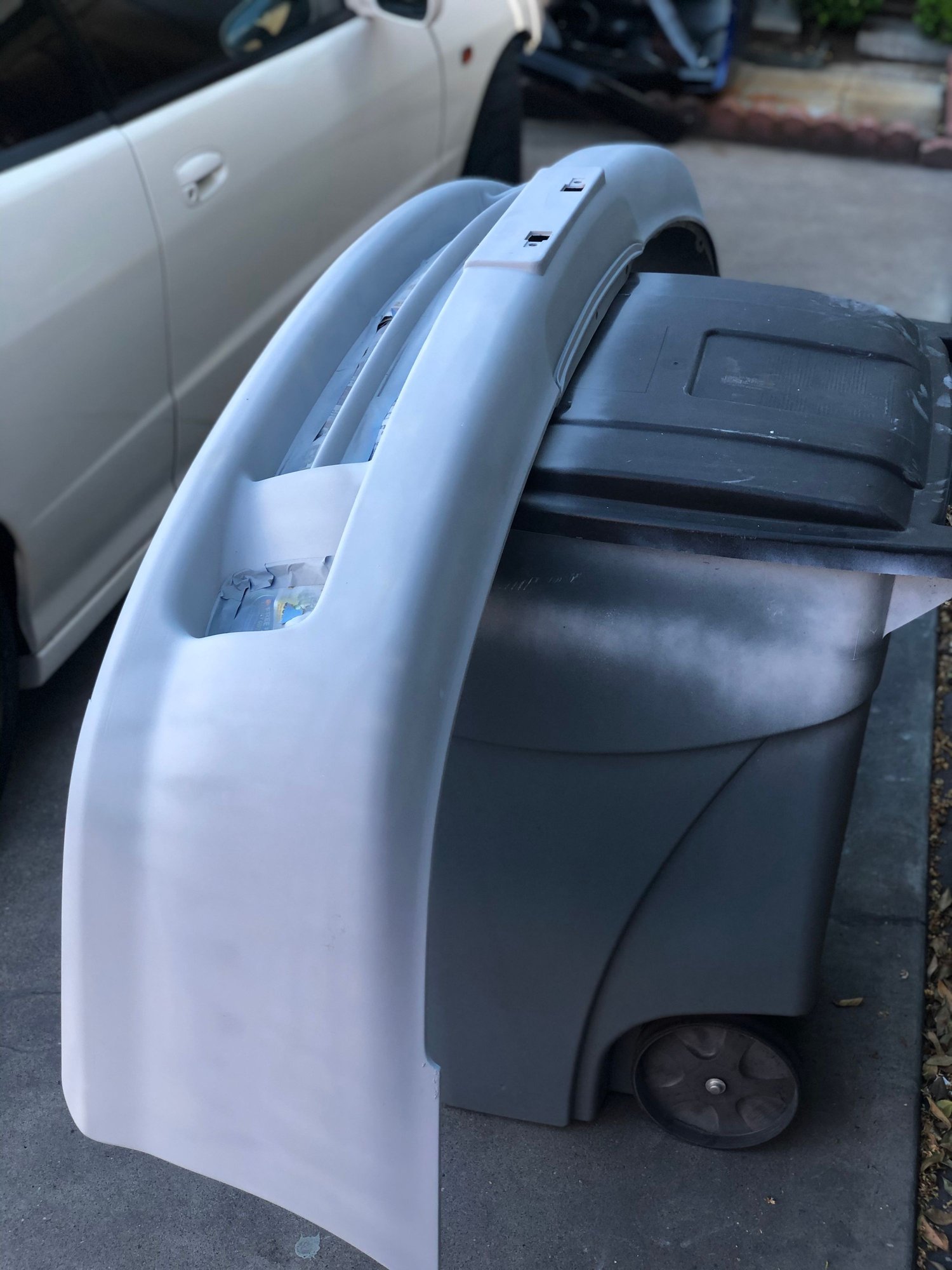 Here are some pictures of the fenders, bumpers, and wing after paint! The whole set up including the tent, compressor, air hose, two spray guns, and all the prep material was roughly $500. The hardest part was preventing dust from landing on the freshly painted parts! I also purchased a rep Mugen front lip from ABS Dynamics. The front lip had very good fitment. The reason I purchased a rep lip instead of a carbon fiber Spoon lip was because my driveway IS EXTREMELY steep. I wanted to purchase a cheap lip to test out the clearance!