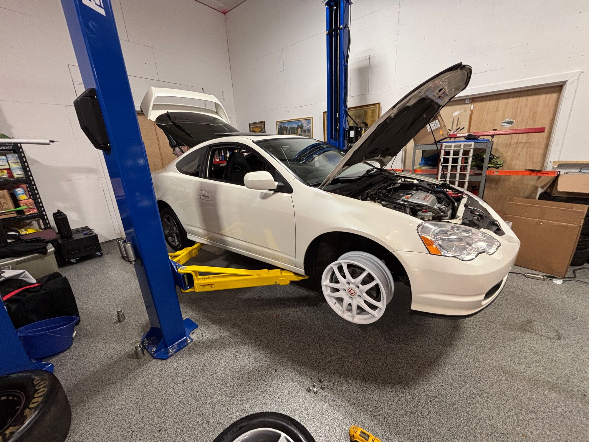 Absolutely fell in love with the DC5 Type R and have been looking for a clean white RSX Type S to start my "conversion". The car was nice with only 70k and almost completely stock. I've just popped the DC5R wheels on (that turned out to be the wrong color) wrapped in some fresh PS4 and put the OEM JDM Dc5 struts on cause I like a little ride height. Currently running 25mm H&R spacers front and back.