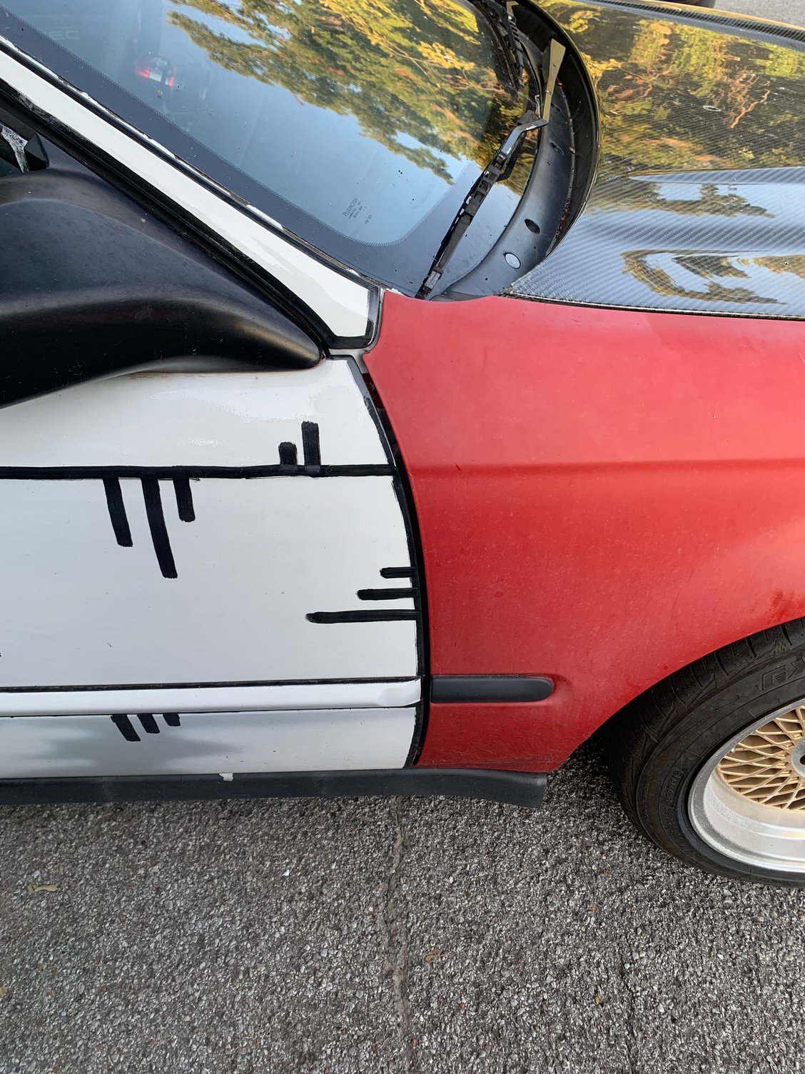 Honestly the worst part about the paint job was the way it was done. It was somewhat (excuse my french) half-assed. With overspray on every wheel, some interior pieces and nasty panel gaps from, presumably, taking the fenders and maybe doors off. Also missing a lot of the weatherstrip seals, which is probably the number 1 thing I dislike about the car. I'm always finding small bugs and debris in the car.