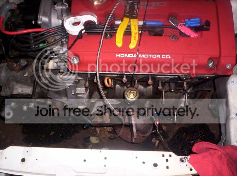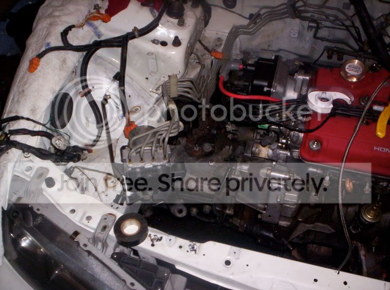 [/IMG] Tried to get most of teh engine bay done today. Going to pull the motor and tranny out tomarrow at some point and hit the interior just as hard. A fellow honda-tech member "jdmorgan" was working on it a little today when i was in the engine bay. He will chime in here sometime soon