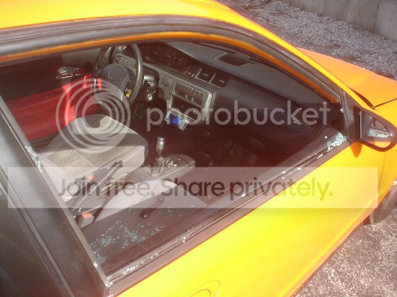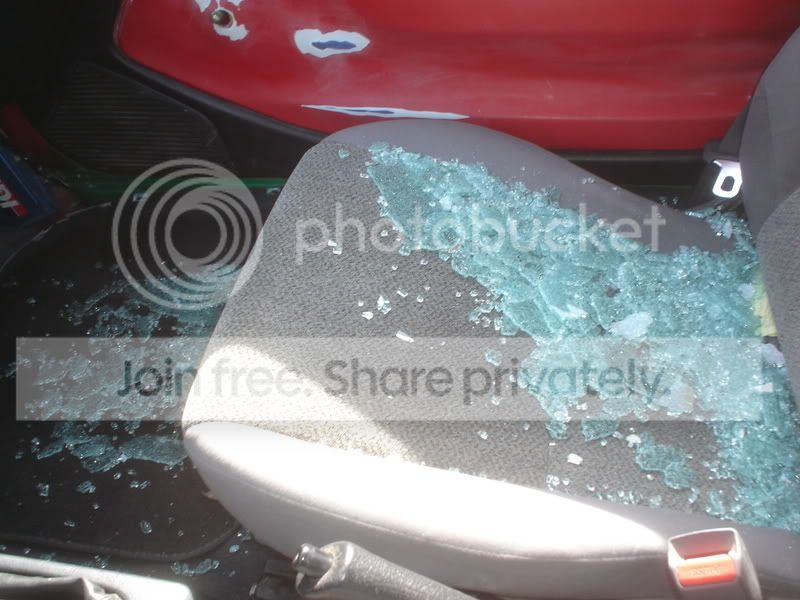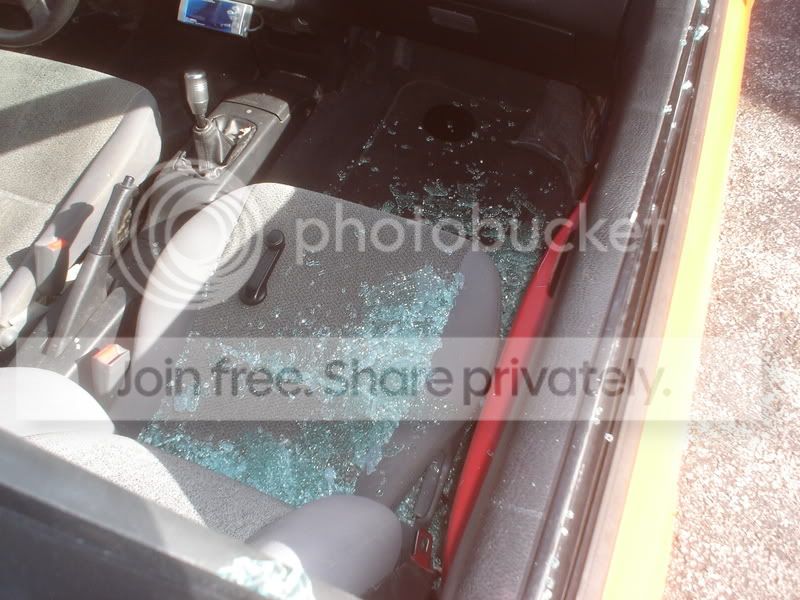 Yeah the only thing that was harmed was the window, i took my faceplate off after i found the window broken, and my sony digital camera was sitting in the passenger seat, i was shocked but relieved that nothing was stolen, i couldnt find anything in or around the car that might have been used to break the window though. got the window replaced this weekend so everything is back to normal, i hope to make some progress on her this week.