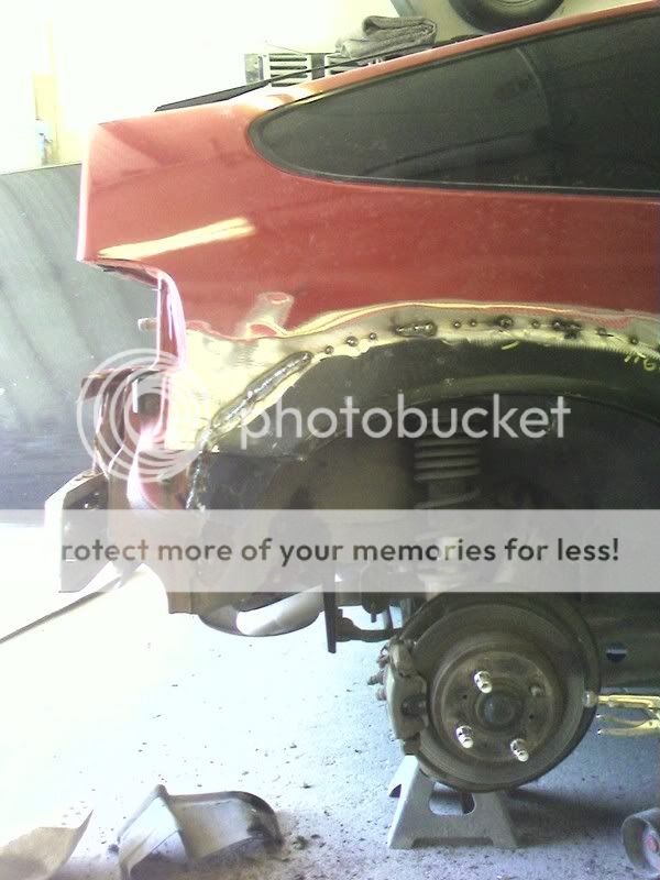 I would have cut a lot more rear fender out... Also, having that much bondo on a car is generally not a good thing. Bondo is not made shaping, but for filling in small imperfections. I would be scared of that... That's like half your quarter panel.