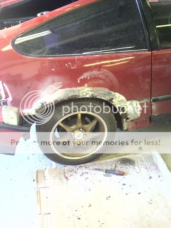 that looks like a lot of work. i get my quarters and rockers on my crx welded, bondoe'd, and painted for 600 from a guy in akron ohio. hes really good at shaping sheetmetal, then i paint it myself. works well.