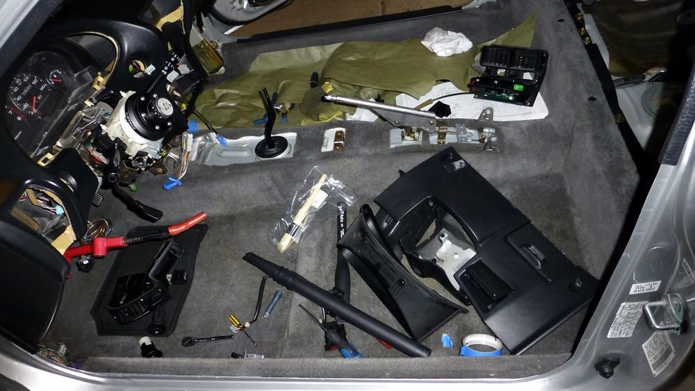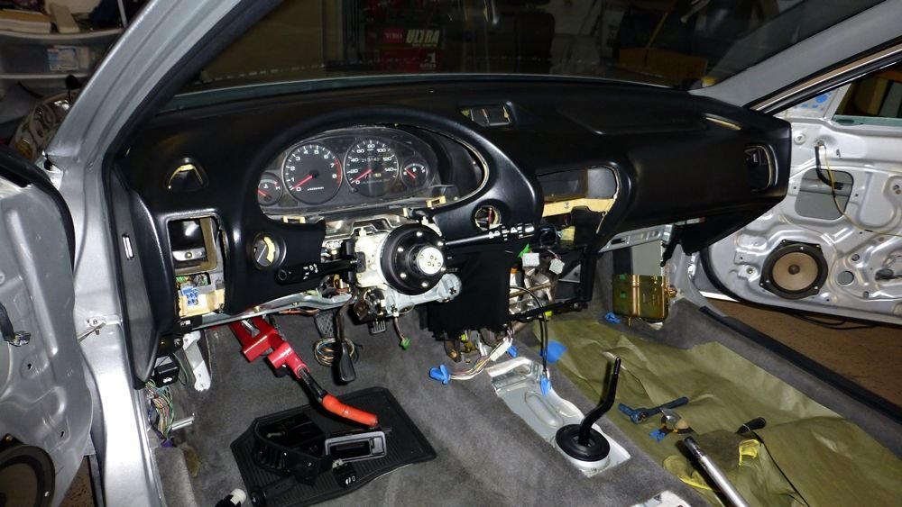 Vents, Clock, Switches, A/C Control Unit, Glove Box, Panels, and MISC Installed. Didn't have the Speed/Tach Meter installed yet. Was working on it at that time