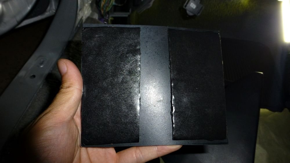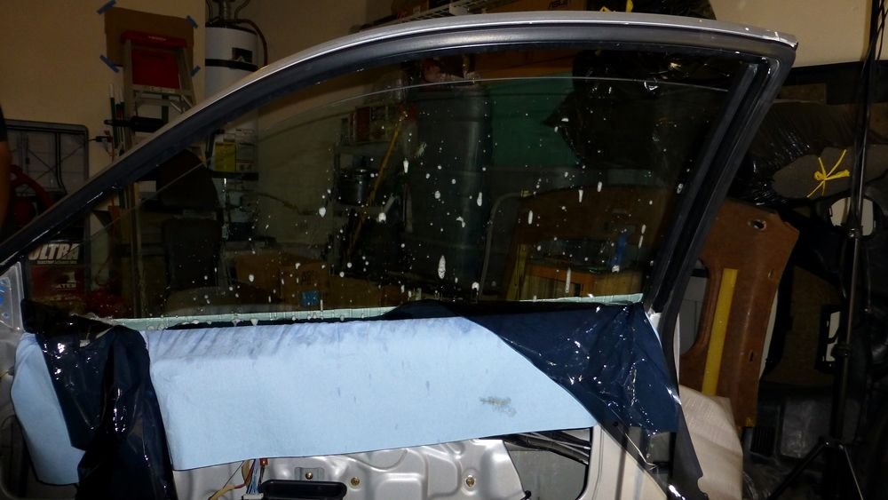 This is the 2 doors before we remove and cleaned the old butyl tape. That's the brown stuff that you see on the door. Very Sticky! This process was time consuming but well