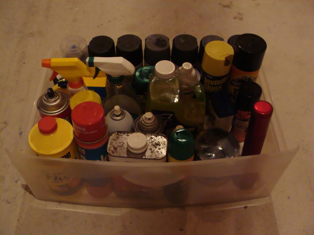 I just have a box full of stuff that needs to be sorted but this box here is all good.Paint, detailing, degreasers/cleaners, lubricating oils, paint strippers/brakefluid.