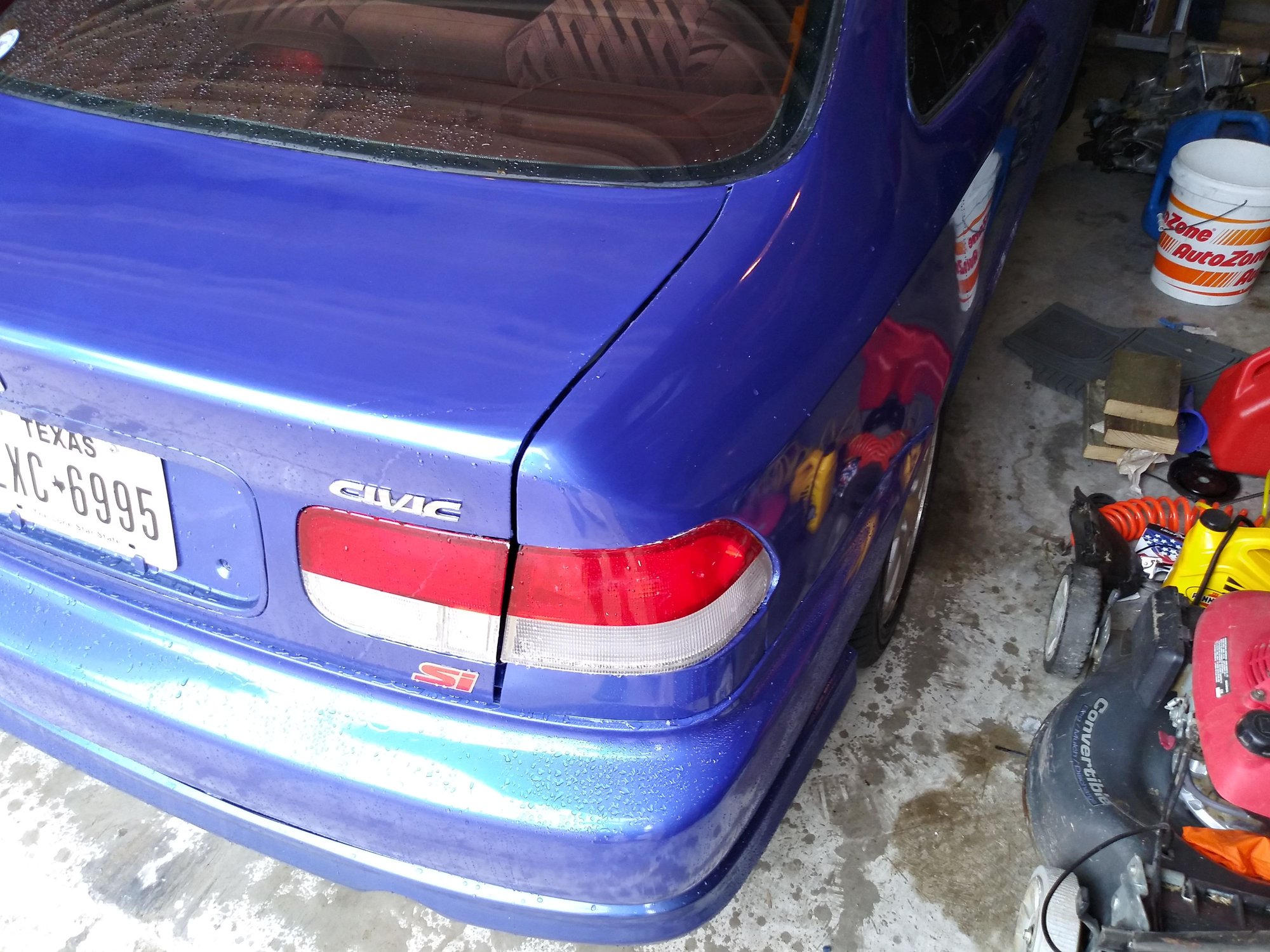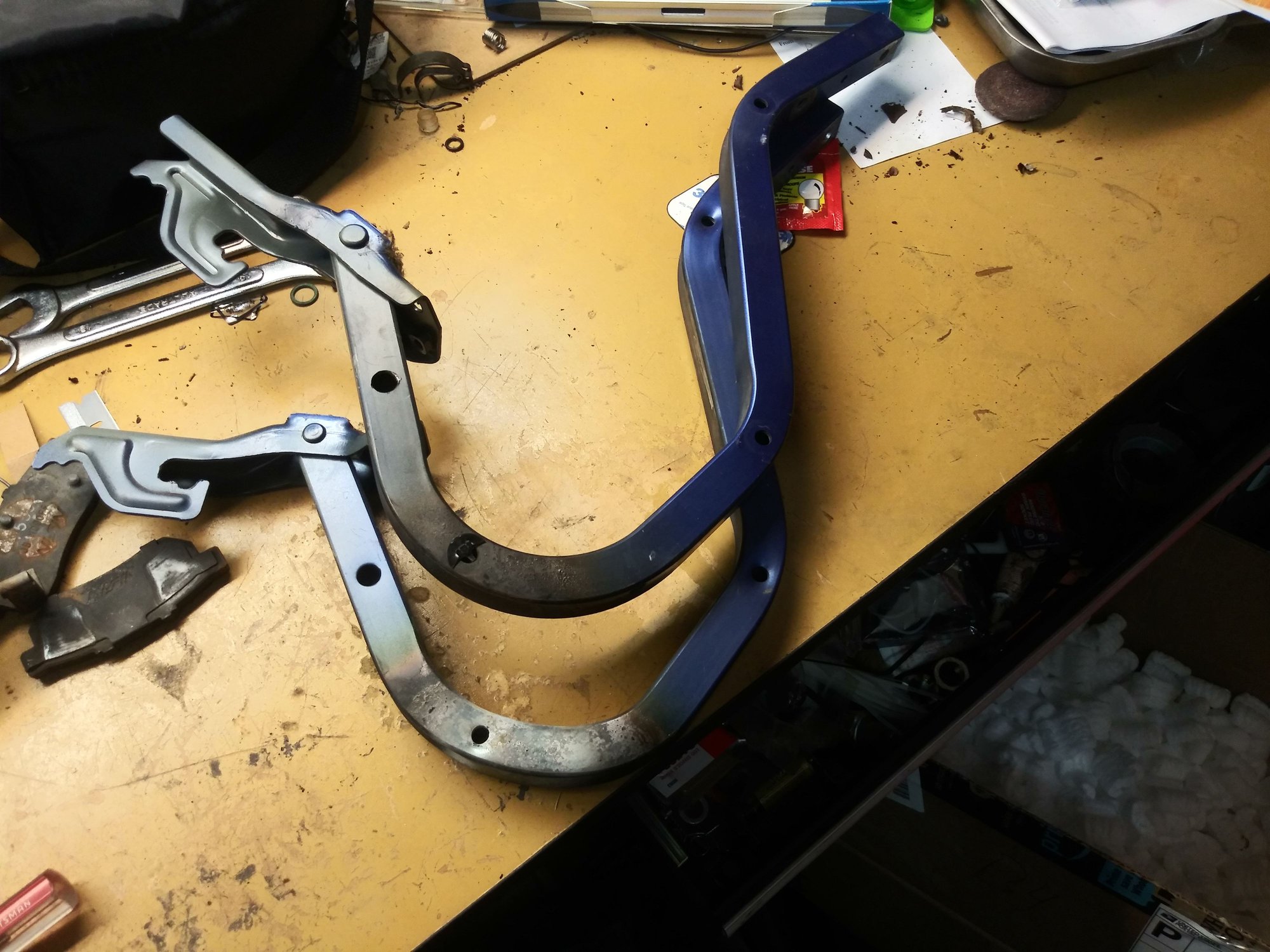 They used a heat torch to Bend the rear trunk hinges back, talk about doing it half assed. Suprisingly I was able to find electron blue trunk hinges and rear under bumper corners on eBay