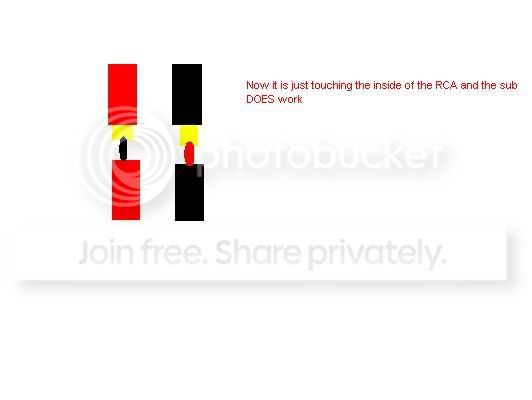 Okay Im running a LOC because im using the stock head unit. I spliced it into the rear speakers. Now when i plug the RCA in all the way, the sub stops working. But when the RCA is just touching without the ground, the sub works. So what is the problem?</TD></TR></TABLE>