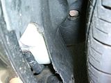 This hole.. is what happens when somebody pulls away ur liner to access the hood release cable... the liner doesn't stay in.. and then gets pulled behind ur front wheel.. thus making it basically rip off...