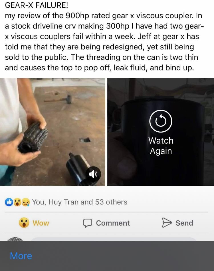 Why they would take my post down is pure nonsense. All I did was point out the problems with the product including photos and use. My dealings with Jeff at gear x and Brian at trans lab were pretty bad. Jeff would still be stringing me along with his nonsense to this day if he had his way. One year later and still no talk of viscous couplers from gear x but do a quick google and well i would say they suck. Stupid fan boys don't like facts.