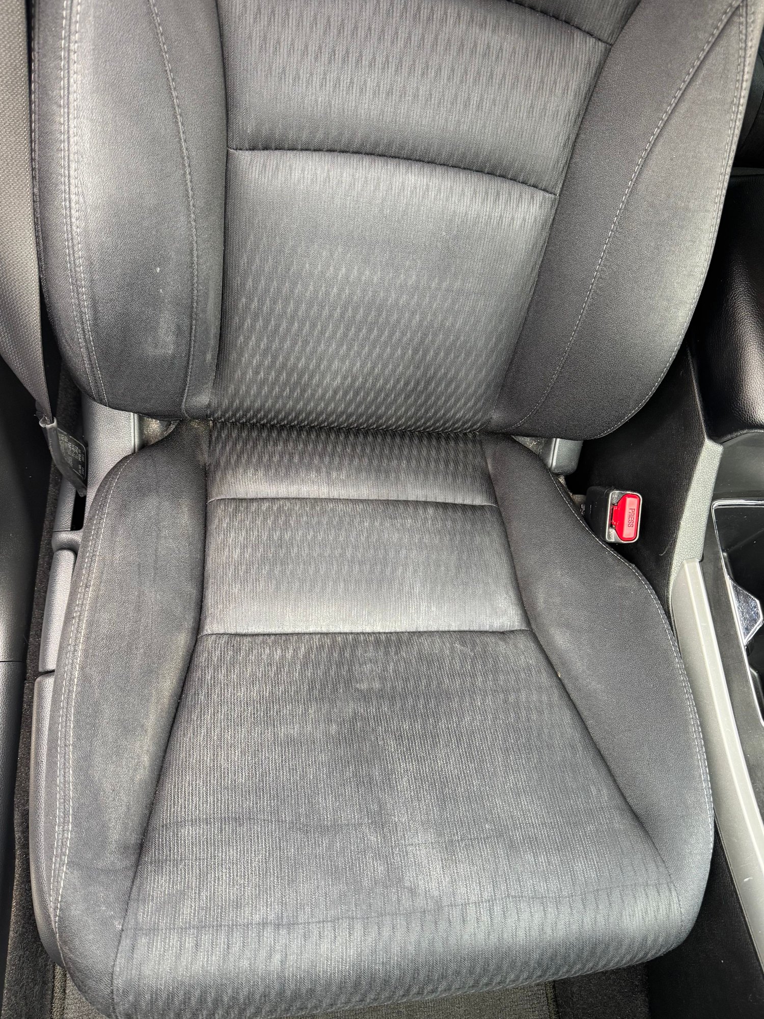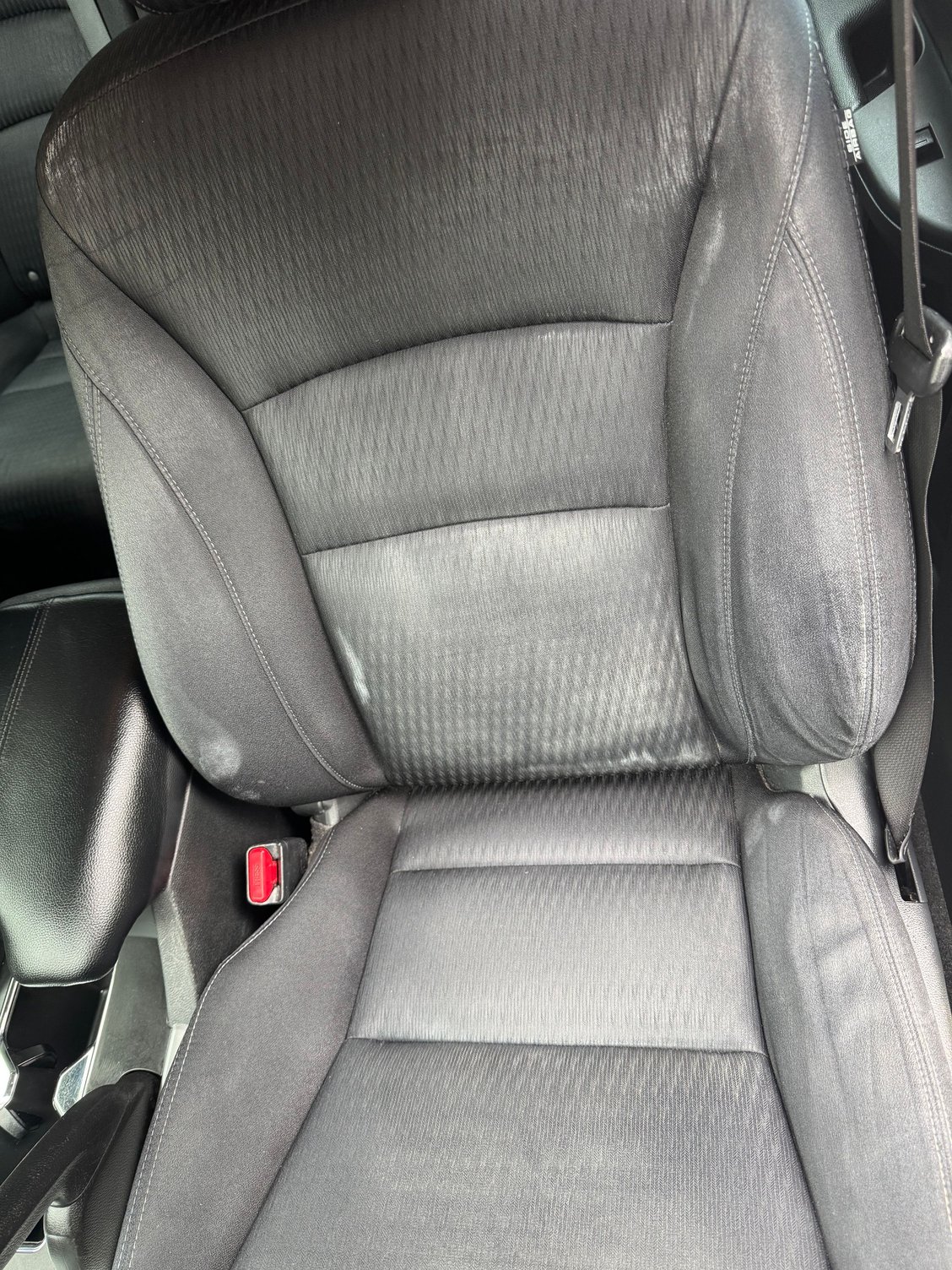 I need your help. I have these white marks all over my cloth seats I can't seem to remove. I used Adam's Carpet & Upholstery Cleaner sprayed the seats and used a rotary brush to scrub the seats. After, I used an extractor and Adam's Extractor Shampoo (4 ounces per 4 gallons of water). Unfortunately, once the seats dried the white marks re-appeared. Any idea how to remove this?