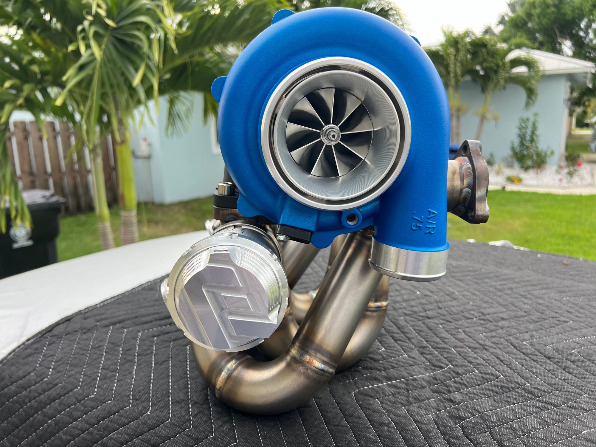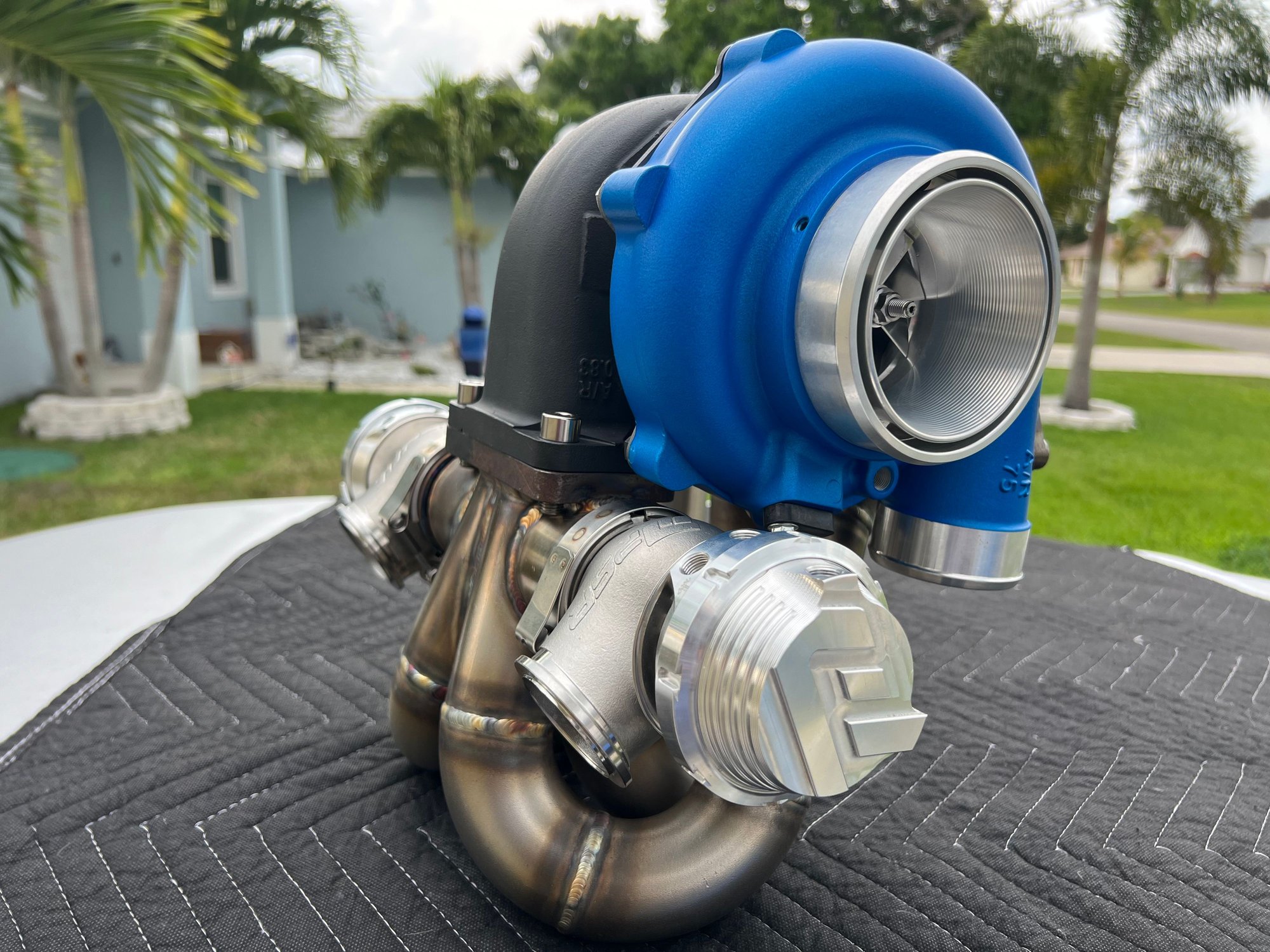 - Schmuckbuilt T3 Top mount modified to run dual 45mm Wastegate Valves.