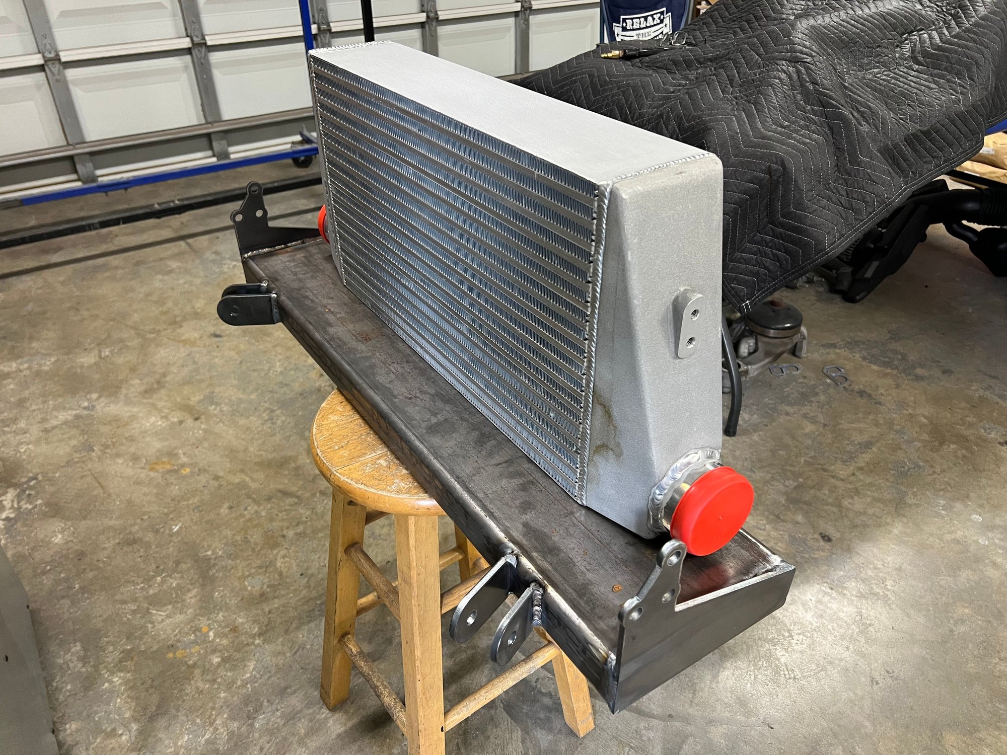 Odyssey Fab Race weight bar. It weighs 40 pounds empty and can be filled up to 140 pounds. Treadstone TR-1245 1000hp intercooler seats perfect on it.