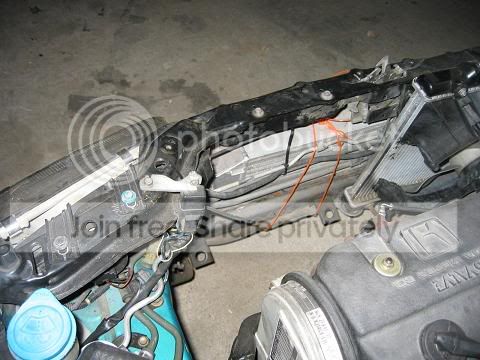 The radiator support panel on the Ricer is damaged... somehow it was pulled out forward and the pinch welds/tabs were ripped off/apart... so it is sticking forward a little.... it makes it difficult to make a solid mount. I think I will have to pull the 2 front tow brackets off the car completely, cause they were bent up for the car being lowered, and they are interfearing with the radiator support being able to be put back into it's correct position. Once those brackets are off, I will put the support back in place and weld it on.