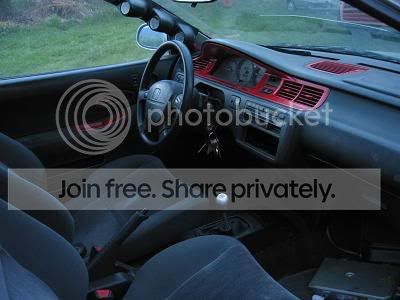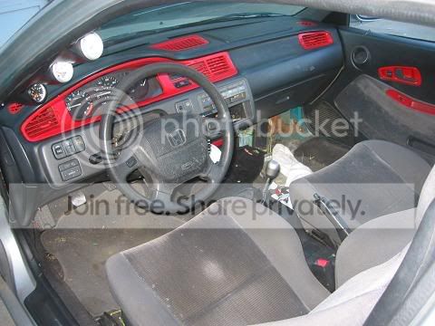 Now... it looks like a 1/2 way decent car. The red on the dash/etc. is gonna stay... I think I will just go off that... red and blue everywhere... but the car is going to start as a flat black primer, and work from there. Might go as far as a flat black paintjob, and clear that... 3-7 layers of clear though... I don't care about the weight, it is for the candy shell look. It will have a turbo so it will be able to compinsate.