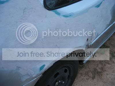 My friend has already begun sanding down the horrible bondo patch on the side... getting it ready for a second layer. This will be nice, because it means my car is getting that much closer to being straight and getting a new paint job. Primer first... and I think it's gonna start happening sooner then later. I want to get the numpers/fender off, as well as the doors to get them sanded good and primered.