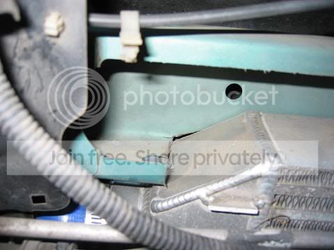 The radiator support was repaired the rest of the way, near the bottom of the subframe where it meets the unibody rails, it is folded over the lip and re-atached instead of sticking out foreward and vibrating all the time. I will eventually go in and weld it on for more durability, but it isn't actualy necessary.