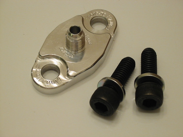 Two allen (hex) bolts (M8 x 1.25mm) with matching lock washers will be included with every flange. Please contact us if you require -4 AN sized or larger fittings.