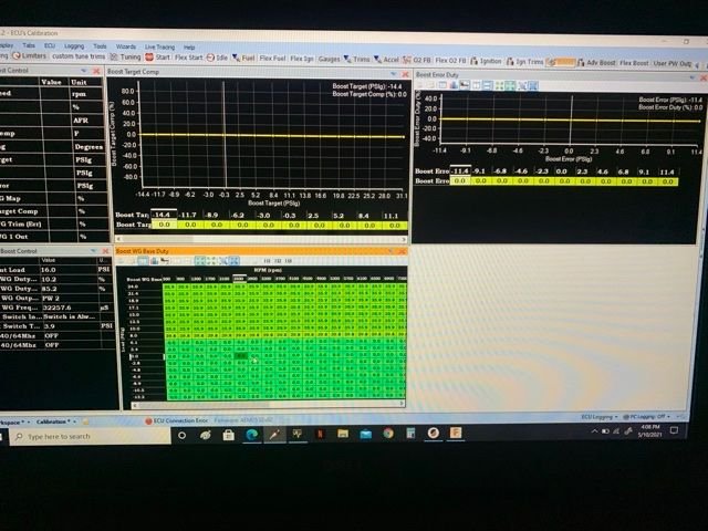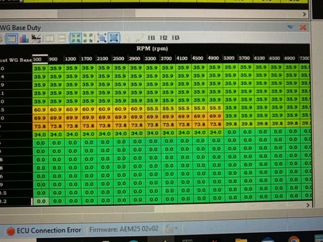 I havent set up all my tables yet and just use the main table. Once i get on a dyno ill be able to play with the boost target comp and error duty to really dial it in and get the wastegate doing exactly what i want