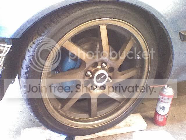 put the old wheels on to get a feel on how it looks selling them this weekend woot woot installed the rears to, but ran out of blue paint so i will paint them later on down the road, im lazy lol