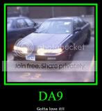 ok... my DA was bought by my dad 5 years ago for 700 bux, it needed a tranny and that was it. fast forward and the car was officially handed over to me May of 2007.. and i've been rocking it ever since... at first i didnt like the car... its an automatic, has 212000 miles on it.. among other things.. power steering leaked.. alot more ****. ne ways.. i decided to geet it done since im too brolke to have ne thing else.. so i gotr some sih t for it... first on the list was some rims.. then i lowered the sucka.. changed over to the JDM one piece headlights, tilted hood, i got the manual swap coming soon.. got some of the parts for the swap and just picked up some headers today... right now im waiting to have my exhaust sent to me.. i already made the order.. doing a tanabe super medallion hyper.. love the stock look, did also a type R replica lip and doing the clear tails.. not altezza just the stock look with white instead.. heres a few picks