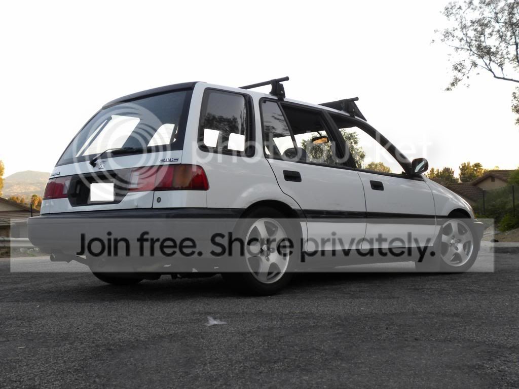 ok so i got my new tires on, a 195-45-16 and i have to say i LOVE them. they have a good enough sidewall to have a good ride. i got to drop it alot more with no rubbing. did roll my front and rear fenders,buti still have to drop it in the rear a bit more. i just got it set yesterday so i want it to settle and see how i like it. but yeah ill drop the rear about another inch. after that ill pull the rear camber out a bit to get it somewhat pulled out. but you get the idea. check out how much more room there is compared to the other tires....