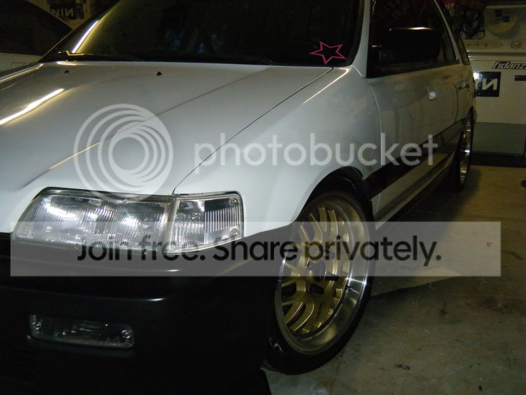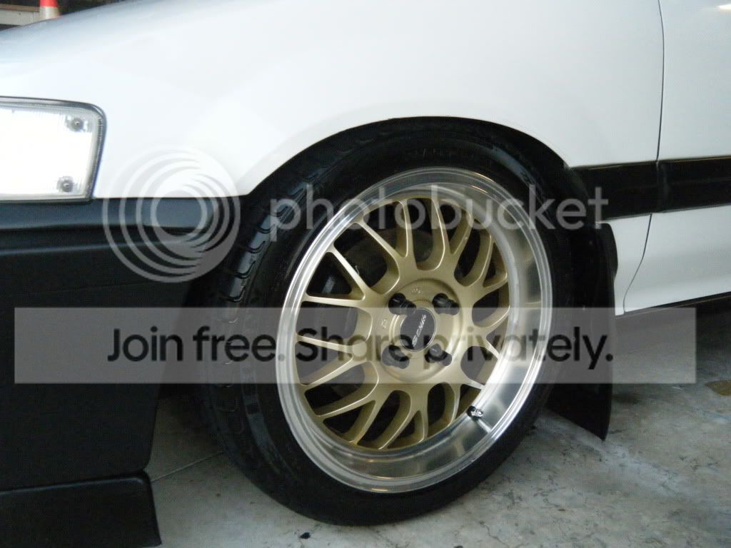 195-45-16's lookin good, happy with that size,rear DA calipers all painted black, that red i had before......not sure what i was thinking. yeah you could see that it was four wheel disk alot better but yeah i like the black even better. maybe bronze what do you think?