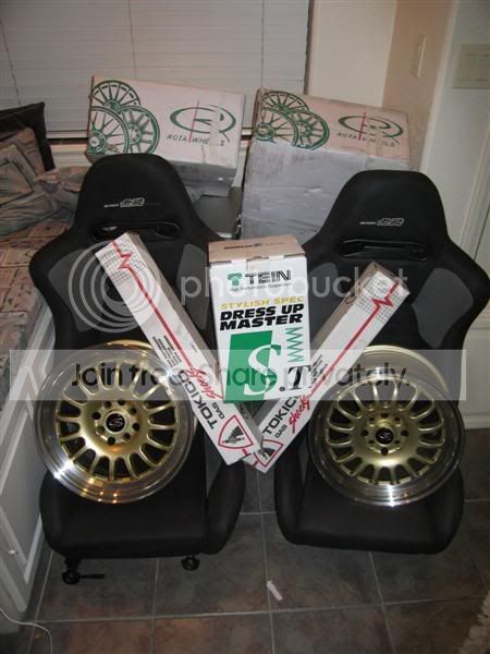. but i may as well keep yall informed on what im doing anyway right?anyhoo, i got my rear suspension in, tires and rims go on today for the rear and then my front should be on soon, *out of stock for tokico front struts : / * ill take pics