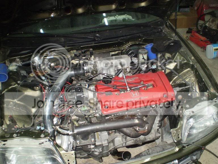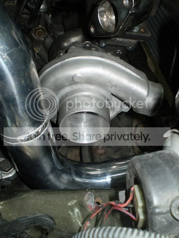 here's the turbo sitting nice with one of the charge pipes and the headlight