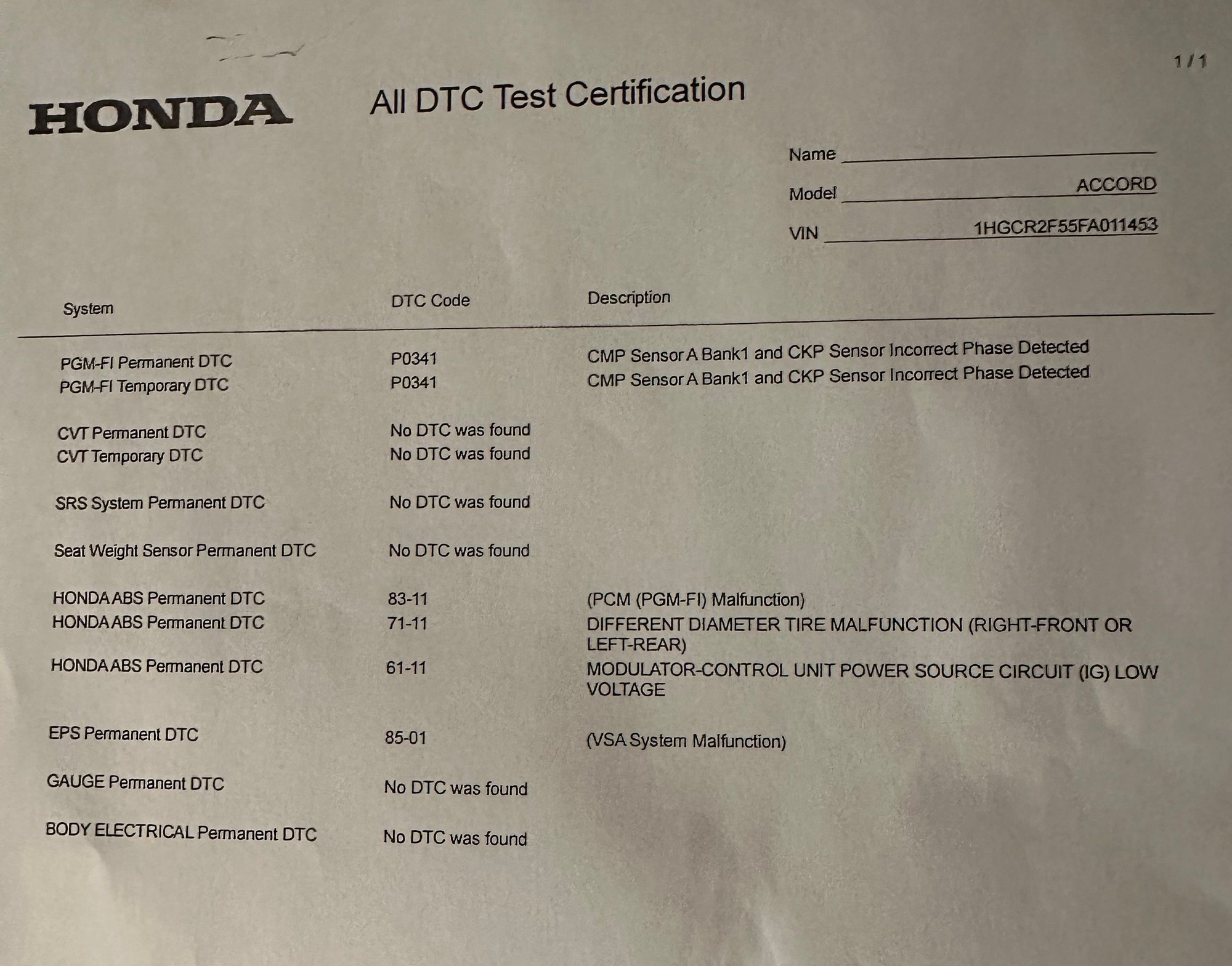 The VSA wheel speed sensor part numbers are different depending on the location. Also, it may not be due to the wheel speed sensor.