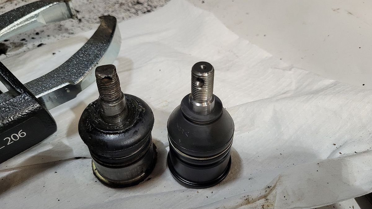 You know, I didn't really have any trouble pressing in the drivers side ball joint. The tool was a little too big and it didn't quite have the right adapters, but it managed to work. When I pressed the passenger side in, the ball joint boot had gotten pinched and tore open. I don't know if it's worth attempting to replace just the boot, or if I should just replace the whole ball joint.