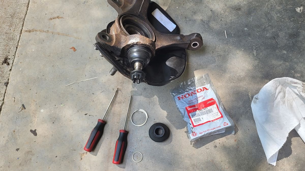 I finally got around to assembling the coilovers. I had ordered new OEM spring cushions for the front top hats since they're still available through Honda. The OEM rears were hard to find, so I bought the KYB replacement top hats since they come with new spring cushions. Then I finally read the directions for the coilovers and realized that you don't use the OEM spring cushions at all. My OEM rear top hats had flaking paint and were a bit rusty, so I'm glad that I had the aftermarket set to replace them with.