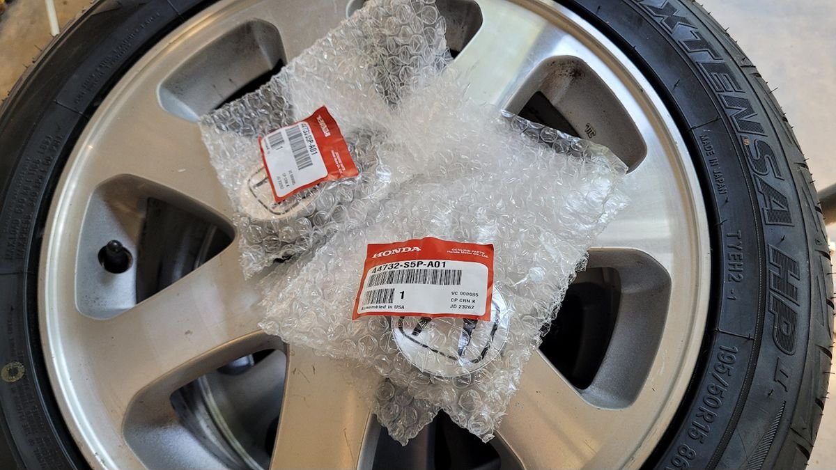 I wanted a matching set of center caps for the wheels and picked up 4 new one's. I was ready to pay almost $150 for the EM1 center caps, but the parts guy told me that the 7th gen center caps were 1/3 the price and nearly the same, so I went with those instead.