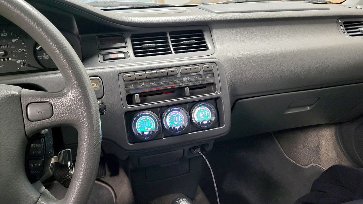 Now that the Ghost Box is in, I was able to move the gauges off of the steering column and down to the radio location. I bought the GlowShift single din triple gauge pod and added a volt meter to fill the extra spot. So far, I'm not really happy with the fitment. I thought the "stair step" design would have angled the gauges more towards the drivers seat, which is important for these EVO gauges since the contrast is poor when viewed at anything other then directly on center. I may end up trying to build my own.