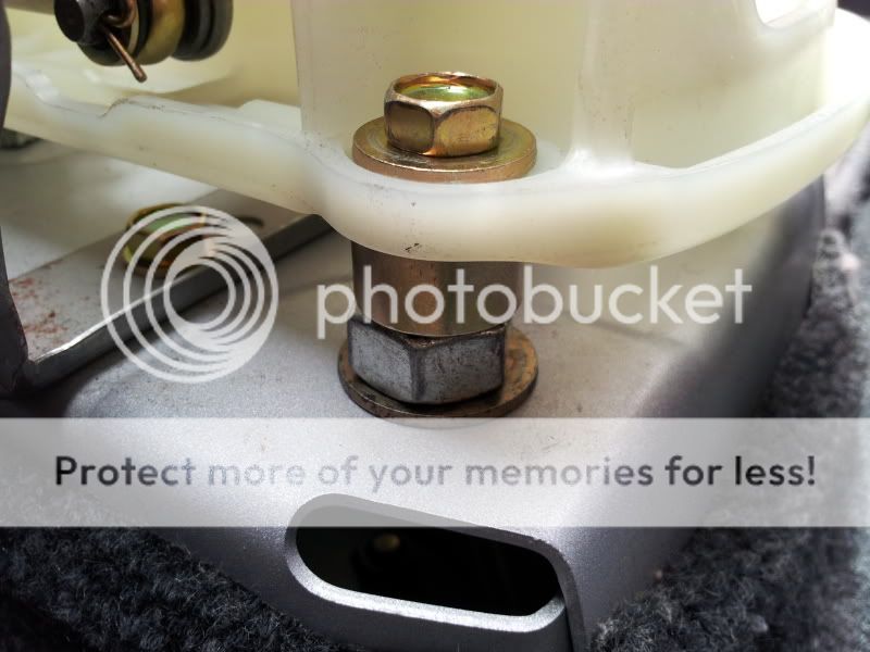 This pic is of the extention added on already to the oem shifter bottom. The allen key bolts a a bit weird to get in and tight. Also if your looking at your oem piece right now you will see a section that I removed. it is a decent size, and so the right cable doesnt hit the oem plastic now that the angles and heights are different.....