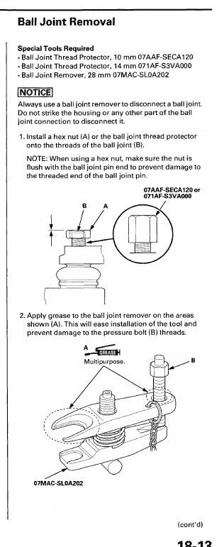 The Honda Manual advice to use a thread protector for joint removal, but its pretty expensive