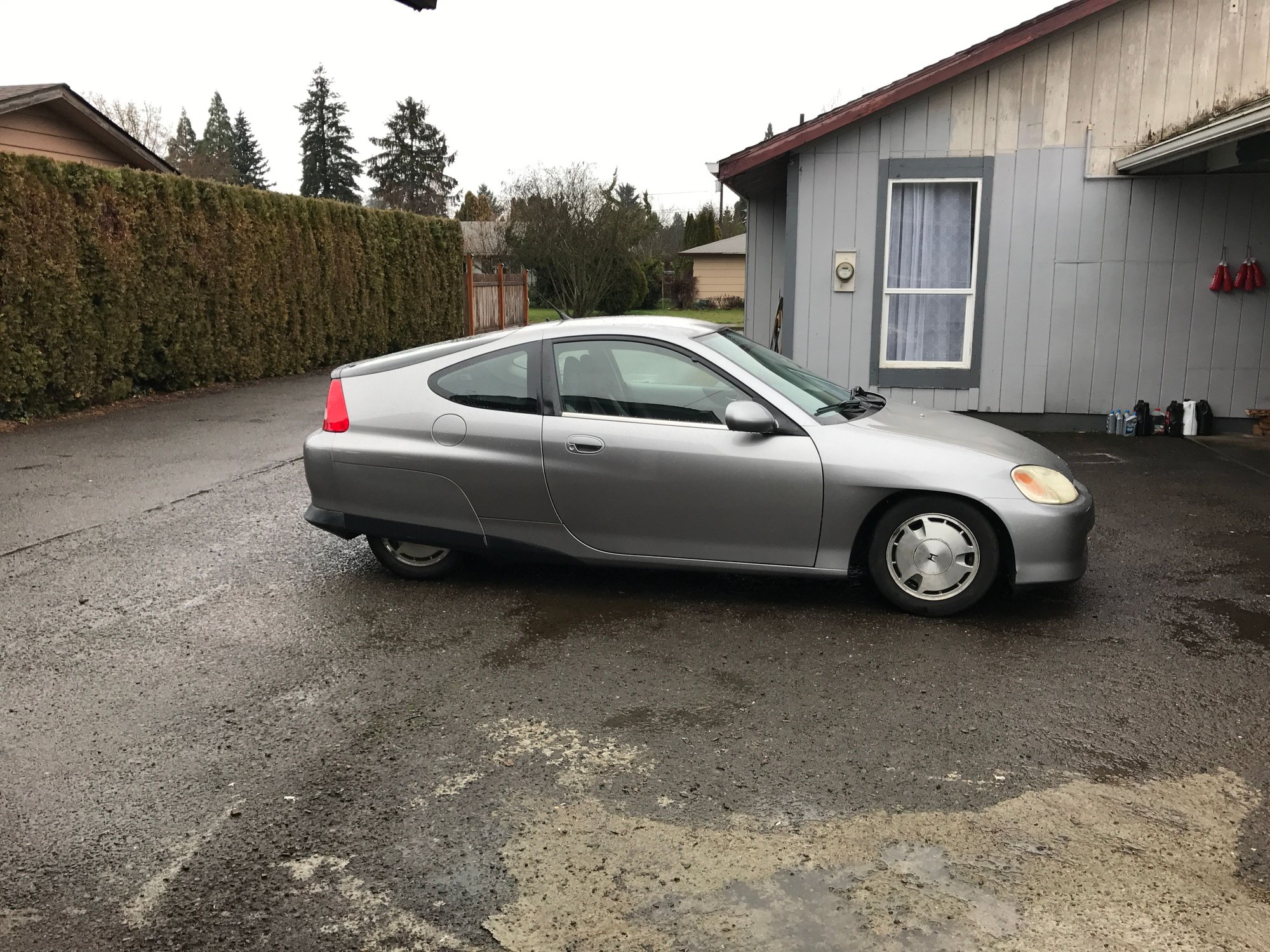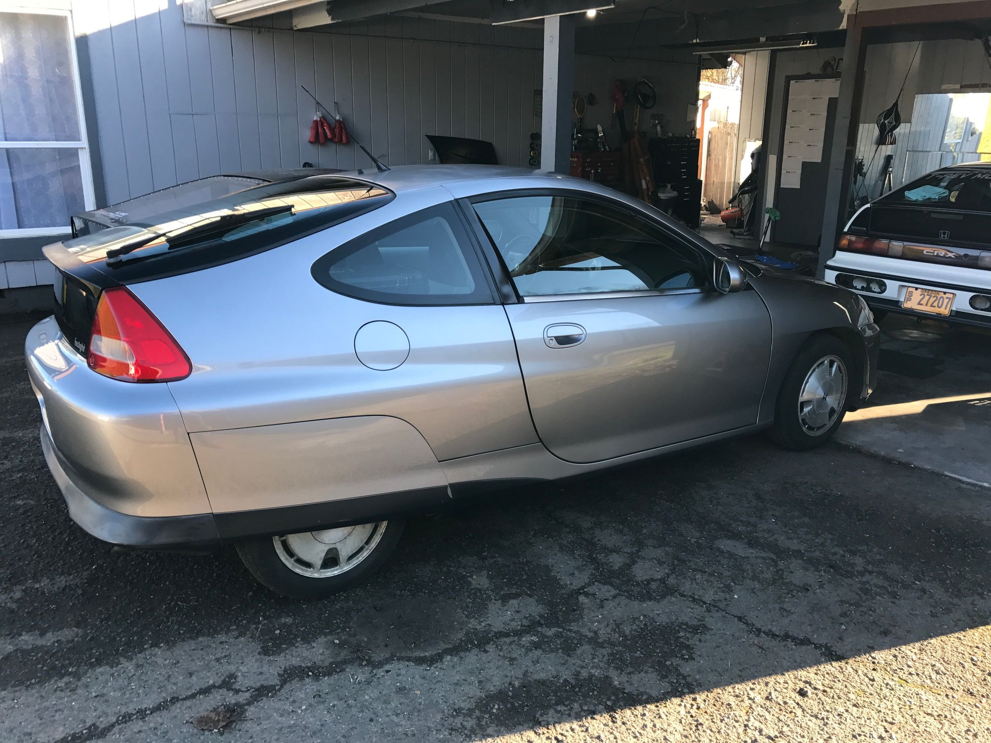 After searching for about a month I was able to come across this 2000 Honda Insight, 5 speed manual with ac and cruise control. I was able to pick it up for pretty cheap ($1400) due to a non charging ima battery. It has a 174k miles and overall is in pretty good shape. Driving my Escalade at an average of 16mpg over 20k miles this last year has killed my wallet. This car should pay for itself in savings in about 6 months. I travel all over oregon to do mobile tuning as well as I enjoy the outdoors allot, hiking, camping and just taking road trips for fun. Due to bad ima battery it was not charging the 12v battery so I found a write up online about cutting two wires for the dc-dc converter and sure enough that fixed it enough to be able to drive and charge. I plan on removing the ima battery, bcm and mcm to help reduce unnecessary weight as I just plan on using the car on the gas engine. I would love to build a lto battery pack down the road but that will depend on total price of the battery conversion. Other option would be a k20 swap with an accord 5 speed but that will be down the road as well. For now I'm enjoying the 47mpg in town in traffic in winter. I've been able to pull mid 70s on the freeway as well.