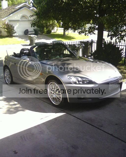 hey sup guys, im kinda new but then im not. I been on here for a while, but didnt want to introduce myself till i had pictures of my car. Well anyways, i bought my car back in june. i got a job at carmax and they threw me a nice deal on a ap1(00) and i was in desperate need for a car(didnt have one, so its my first). I was originally looking to get a 350z, or g35, but i guess the s2000 was spontaneous. I really was a nissan guy before and dispised of honda's, until i actually drove my car, and now im in love with it. It handles sooooooo nice, and i've spanked so many cars on the straights (lt1 corvette, mustangs, impreza's, gto, dc5, etc.). Anyways, we all know how tight our s2000's are. But since ive had the car, some of the things i have done are debaffle the intake, k&n drop in filter, removed resonator, cleared headlights, add fog lights, sparco seats, hard top strikers, advan rims, and clear sidemarkers, bulb set, and espelir springs are on their way. Its just the beginning, but thought i would stop by to introduce myself, and hopefully meet some members from sacramento/nor cal area. and here are some pics of my car....