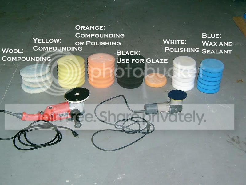 </TD></TR></TABLE>you go from compound to glaze? and a polishing pad with compound? I guess everyone has their own techniques but the most common way is compound with orange or yellow, or I like foamed wool. then polish with white (A white pad has very very little cut, I am not sure why you use it with a compound), then follow with a glaze on a black pad. I would definately rather use a polish after one step of compounding opposed to compounding it twice with very mild pads. Compound IS abrasive, and even if you use it with a black finishing pad (Which is made for wax, sealants, and glaze), you run a very high chance of still have micromarring.
