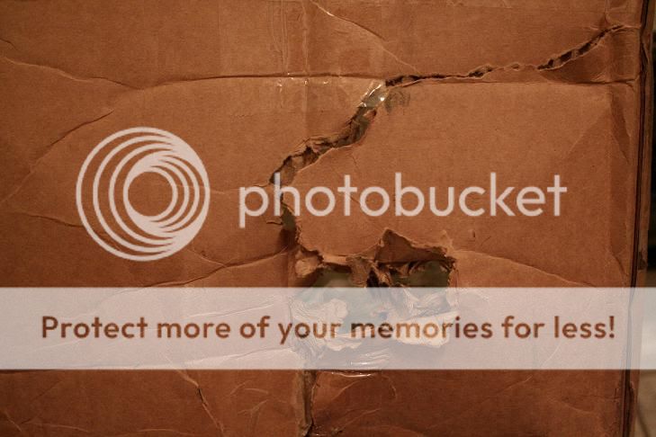 item got here on friday, march 6. found the package at my door when i got home from work that night. looked at teh package outside and wow..look at the damage on the box!